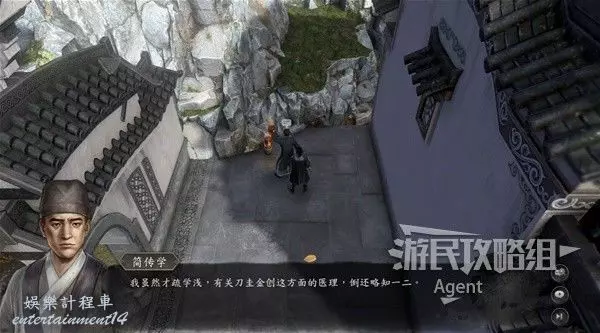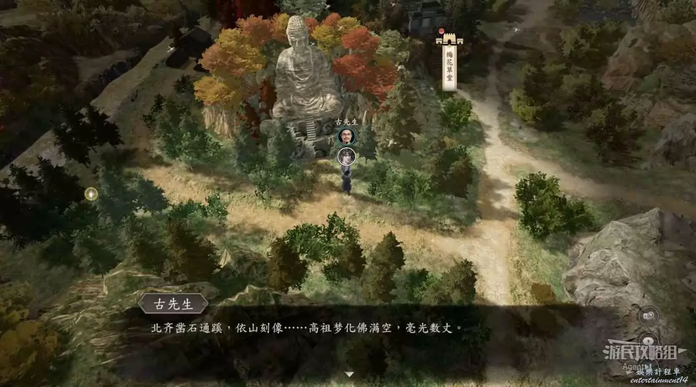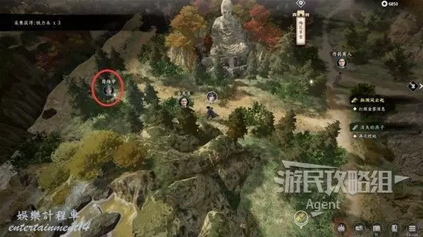 蒙山大佛附近,下圖位置遇到簡傳學(出自《三少爺的劍》),他會給你藥方,接到支線任務“醫治簡傳學”。