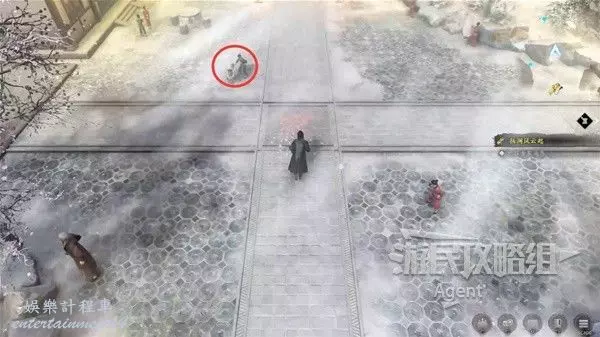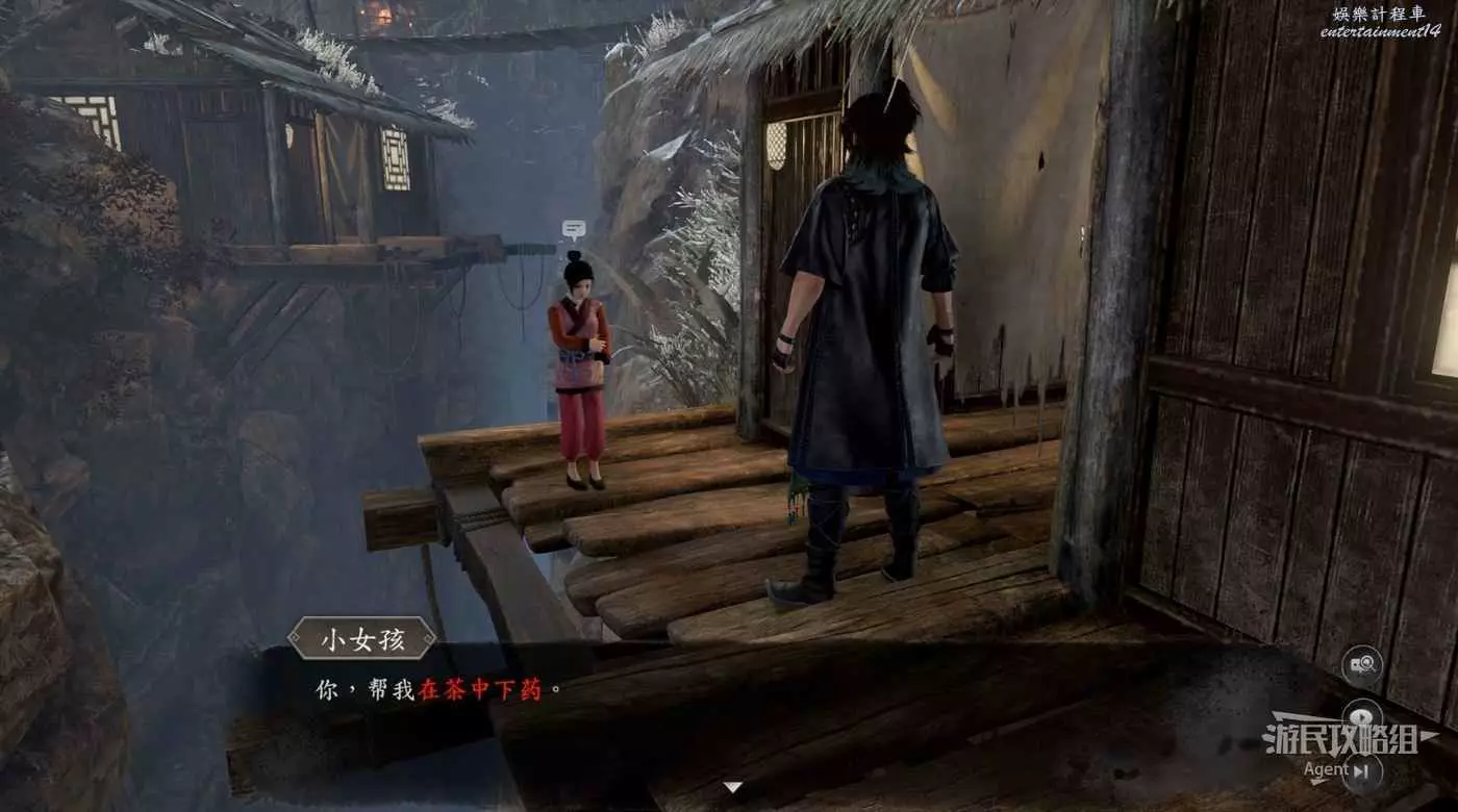 下圖位置有個小女孩,她會給你包藥粉,要你去給客棧對面的瘋老婆婆的茶壺裡下毒。
