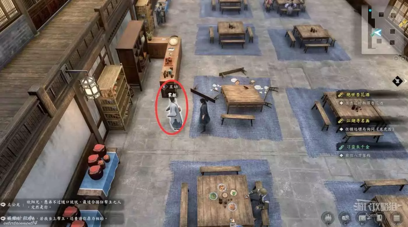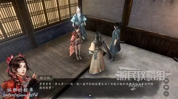 進入八方客棧,見到孫小紅和天機老人孫白髮(百曉生兵器譜排名第一),觸發支線任務“白髮故居”。