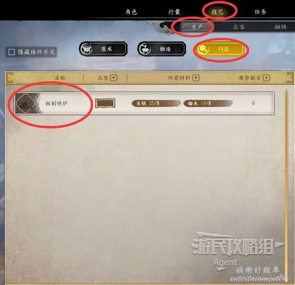 先在背包裡學習粗制鐵鏟的圖紙,然後製作粗制鐵鏟,再與女孩對話。
