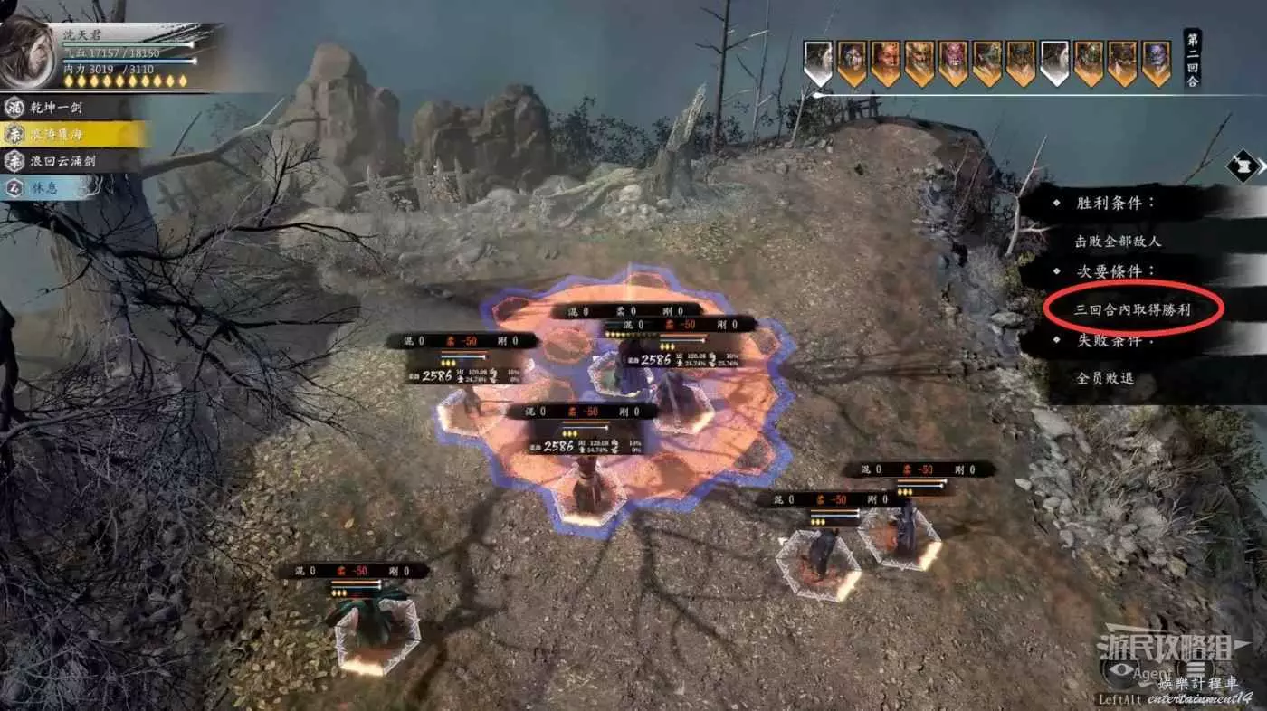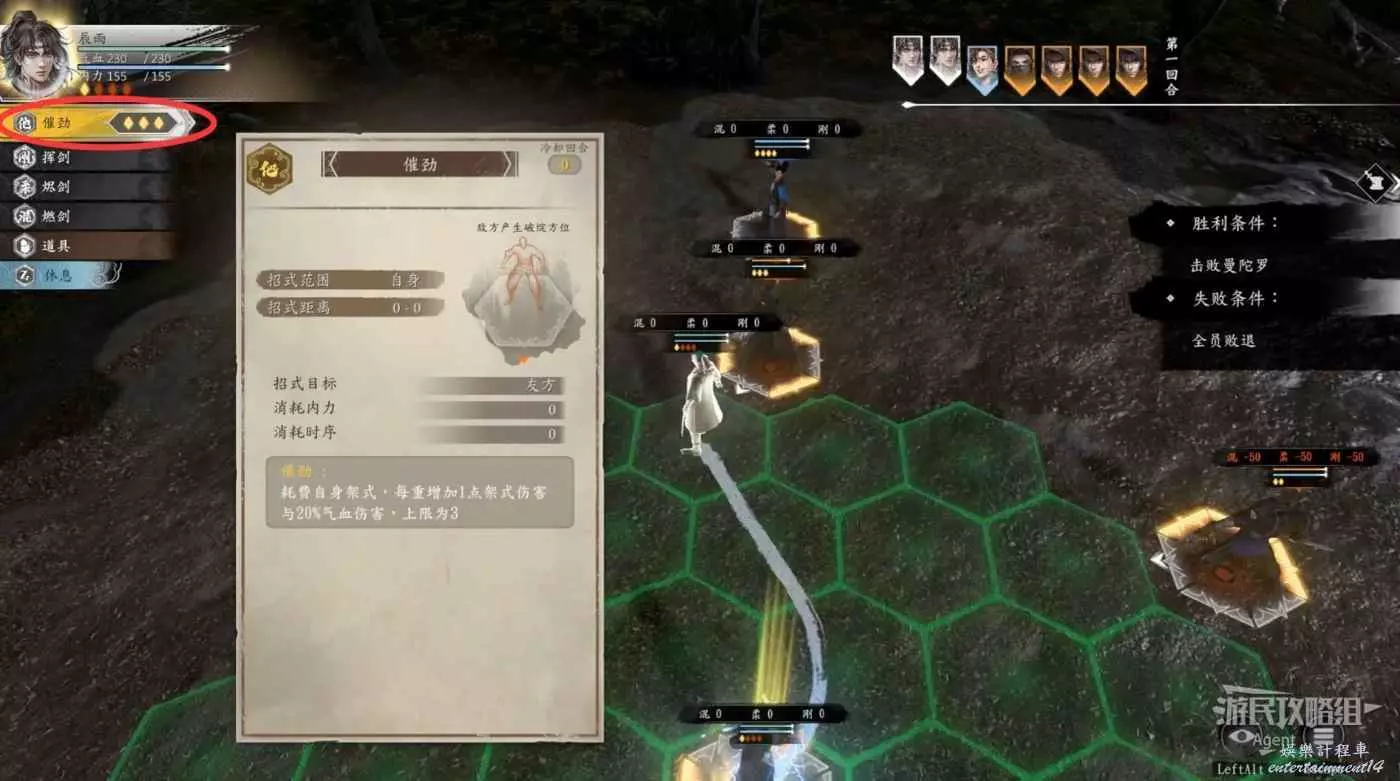 注意戰鬥中的次要條件,達成會有額外獎勵。比如遊戲開場的第一戰,等敵人聚過來時發動範圍攻擊,則可三回合內取勝。