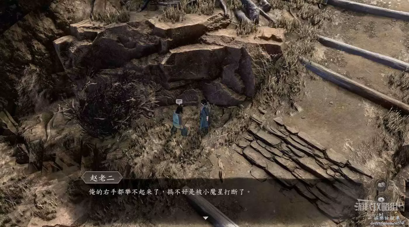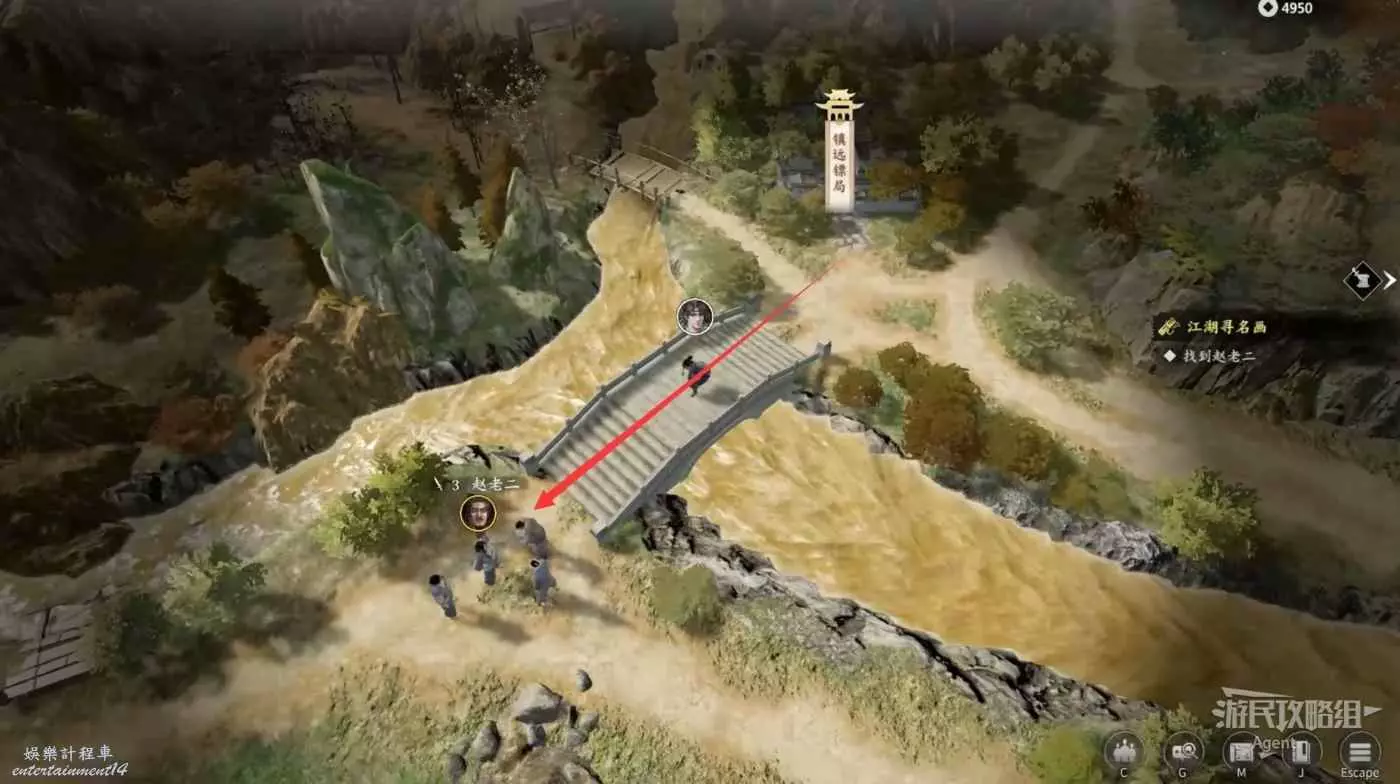 從鎮遠鏢局出來,過橋就能找到趙老二,就是遊戲一開始在惡人谷幫小魚兒造假的那個趙老二。