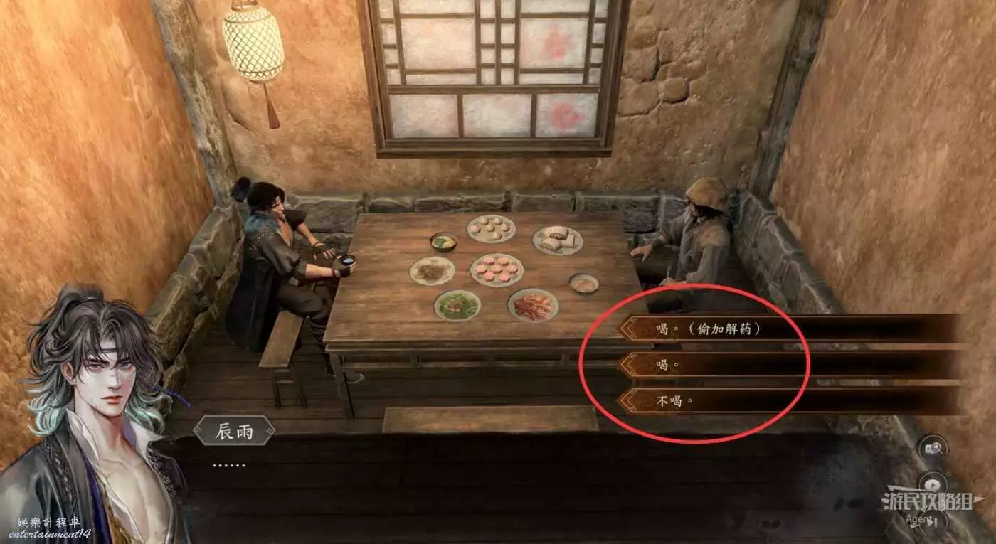 如果你手中還有解藥素女丹(也就是剛才在往茶壺放毒藥後,並沒有用掉解藥),此時就會多一個選項:偷加解藥。你喝酒之後,老乞丐以為你中毒了,會有一大段隱藏的劇情,是另外兩種選擇所看不到的。