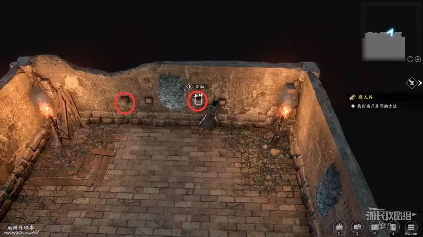 所以只需觸摸這兩塊石磚使其凸起,就可以開門離開了。