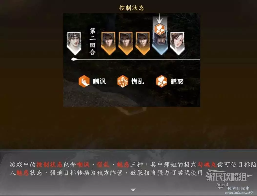 控制狀態包含嘲諷﹑慌亂﹑魅惑三種,其中師姐的招式勾魂丸便可使目標陷入魅惑狀態,強迫目標轉換為我方陣營,效果相當強力可嘗試使用。