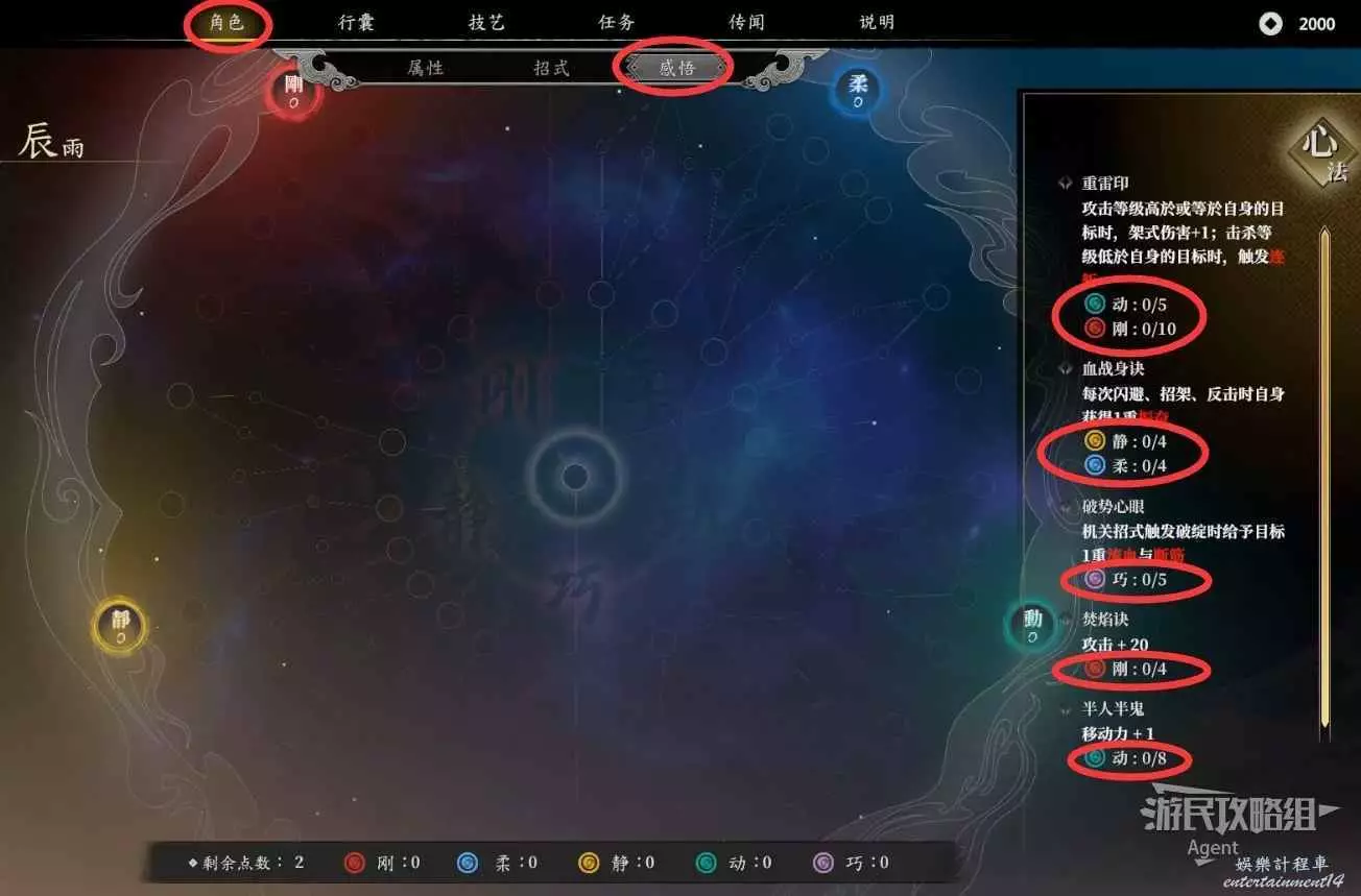 醒來後解鎖感悟系統。感悟加點時,要注意右側已習得的心法,優先往啟動心法的方向去加點。