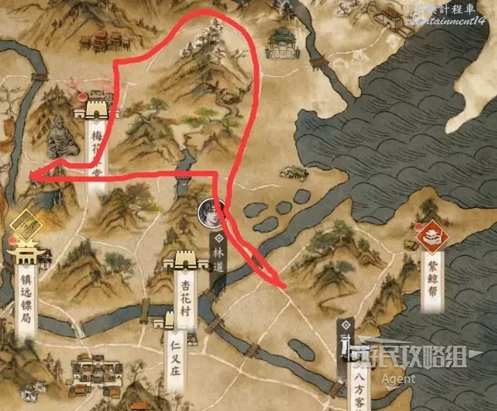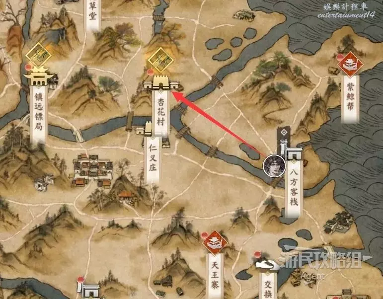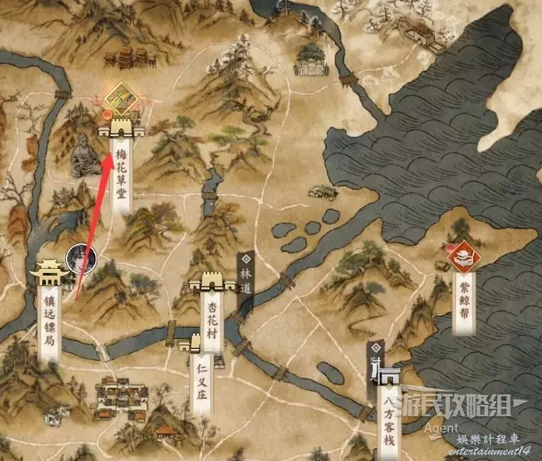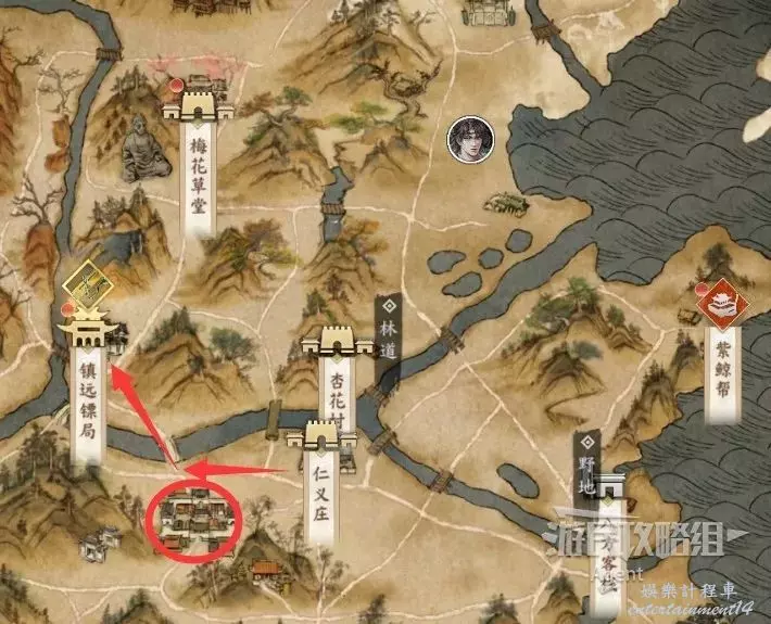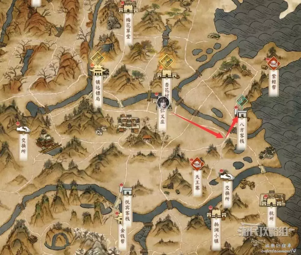 前往仁義莊西北的鎮遠鏢局,中途會經過洛陽城。(洛陽城目前還沒解鎖,所以暫時還進不去)