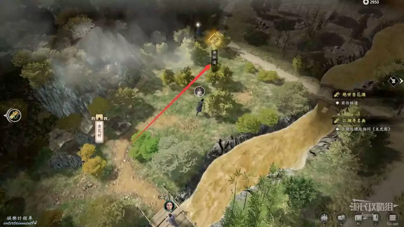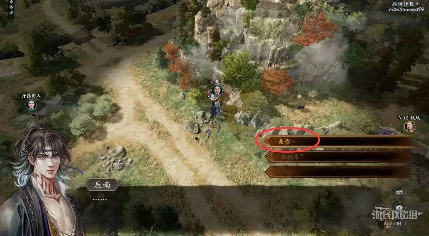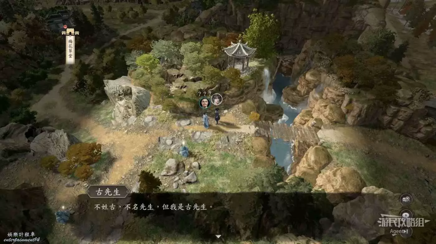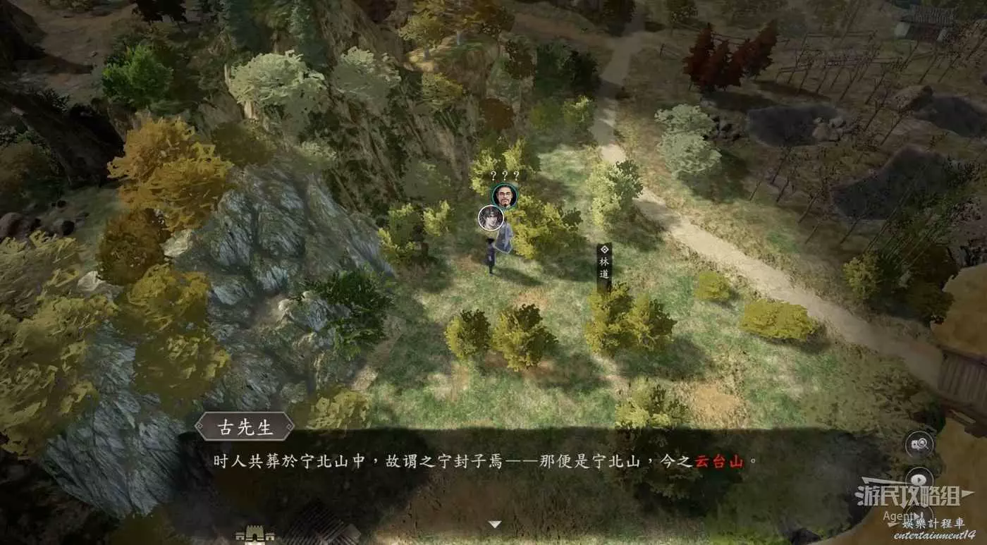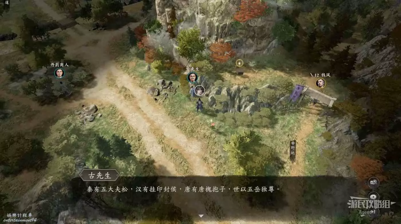 離開林道,在附近會遇到古龍先生,跟著他走,他會帶你遊覽各地名山古跡。注意看古龍先生和你說的每一句話,後面他會考你。