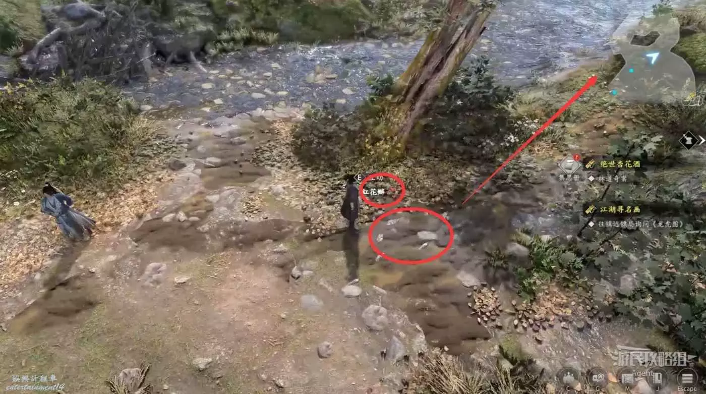 楚留香旁發現紅花瓣和巨大的腳印,跟隨腳印順著河往下游走。