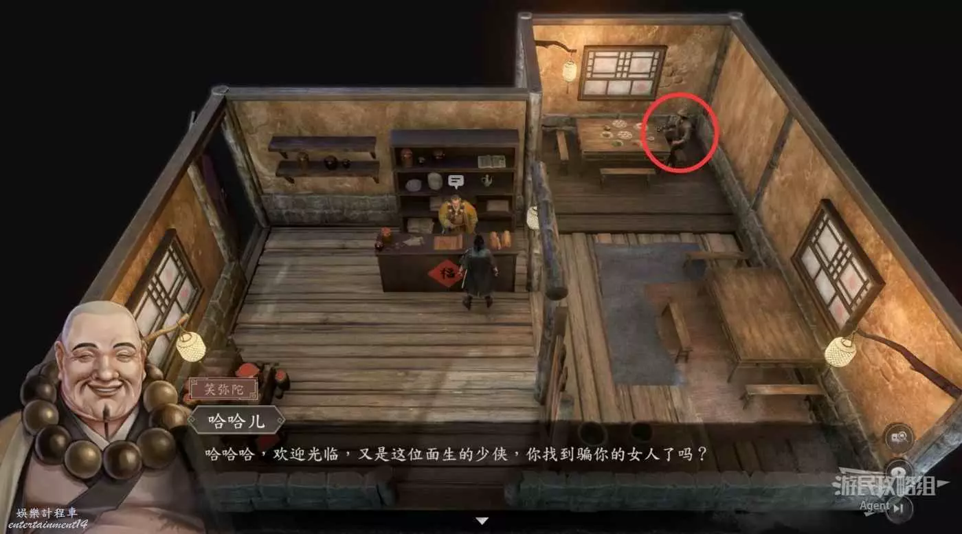 進裡屋見到梅二和李尋歡,劇情後搜刮下房間有些物品。然後來客廳找梅二,劇情後李尋歡入隊。