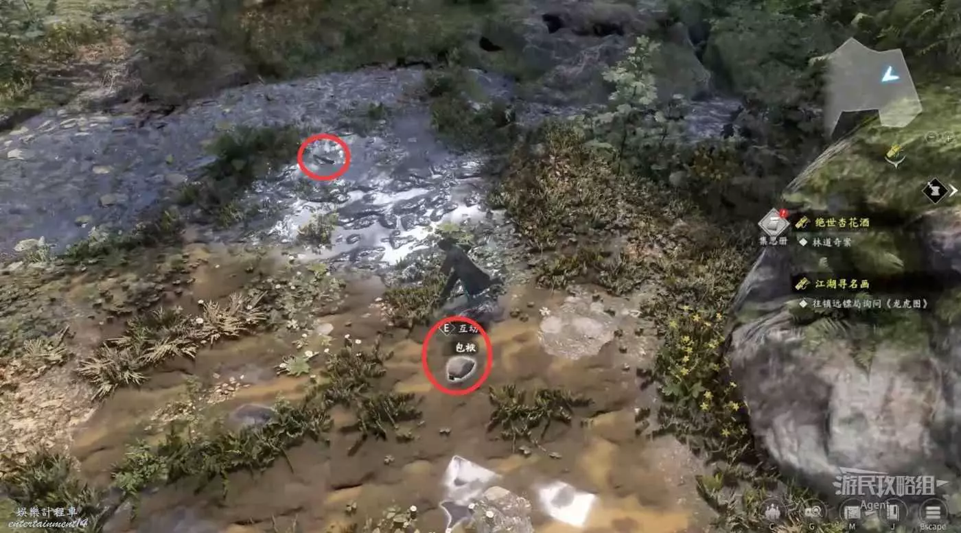 來到惡人谷,橋頭刻字的石碑前撿到石頭。