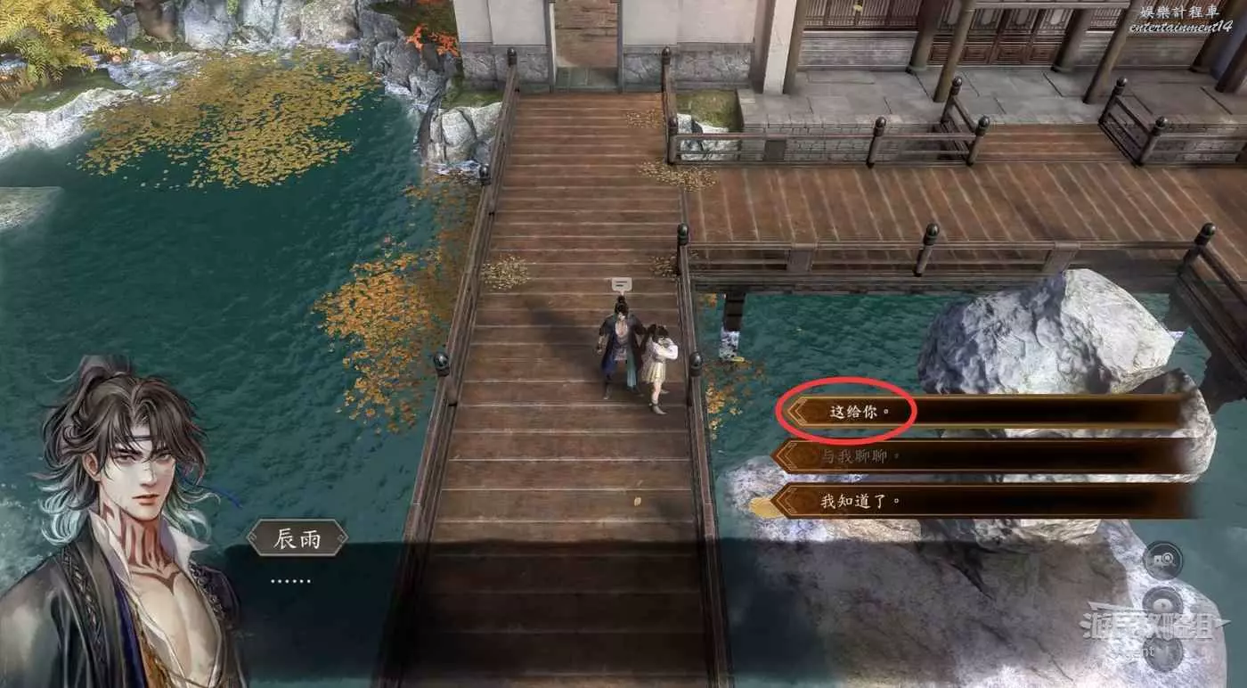 去找楚留香的好兄弟胡鐵花對話,旁邊桌上拿到一件禮物。