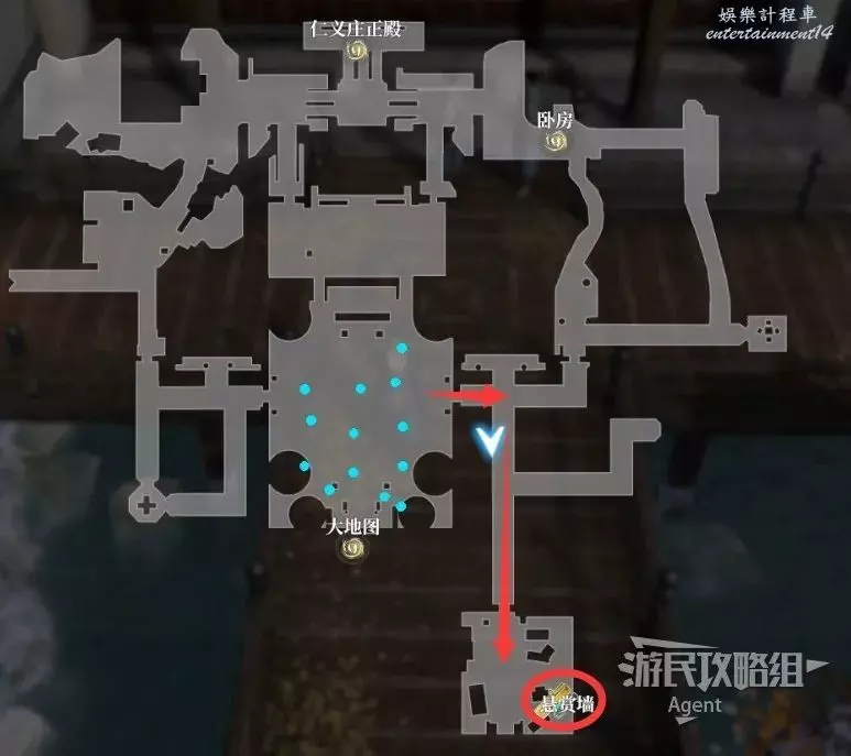 出門逛逛仁義莊,發現大家對冷二辦這個英雄宴頗有微詞。進入仁義莊正殿有些物品搜刮。