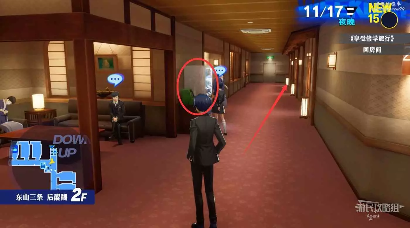 17日開始修學旅行,逛逛酒店的三層樓和朋友們對話。一樓店員處買的東西可以回去送給天田弟弟作為伴手禮。