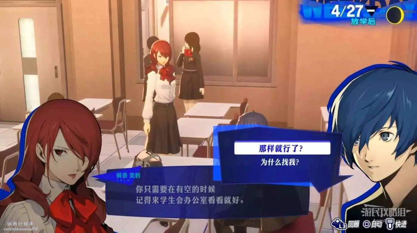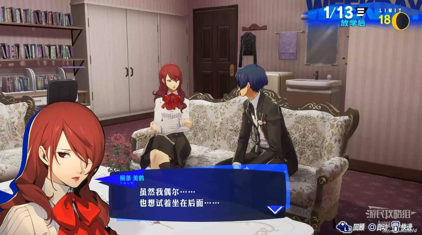 到學校一樓教職員室外,找學姐桐條美鶴一起走(學力需達到滿級6級),解鎖【社群】女皇 桐條美鶴。留給你追學姐的時間不多了,抓緊時間吧!