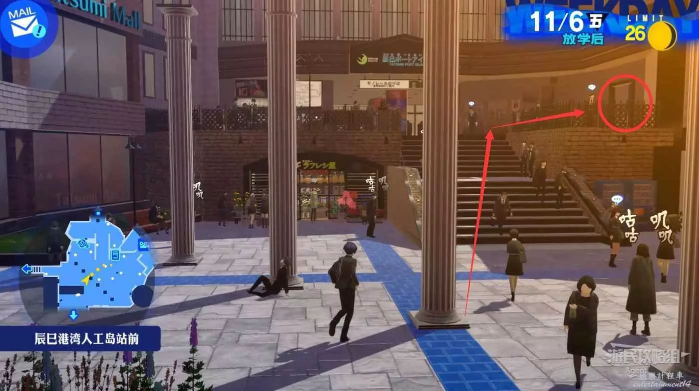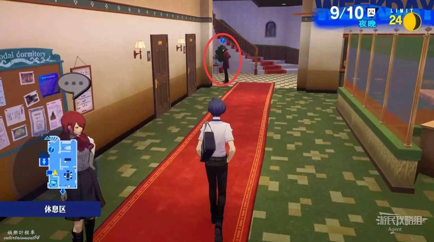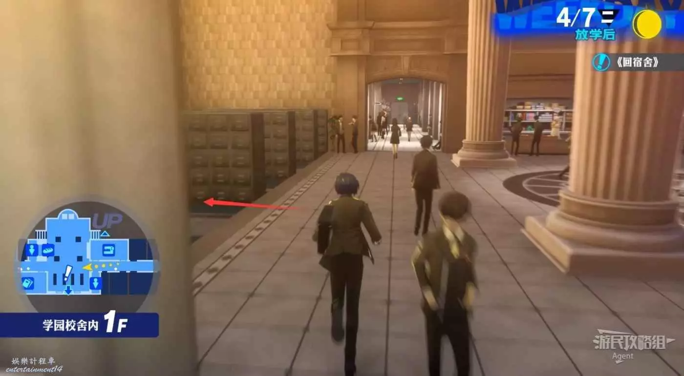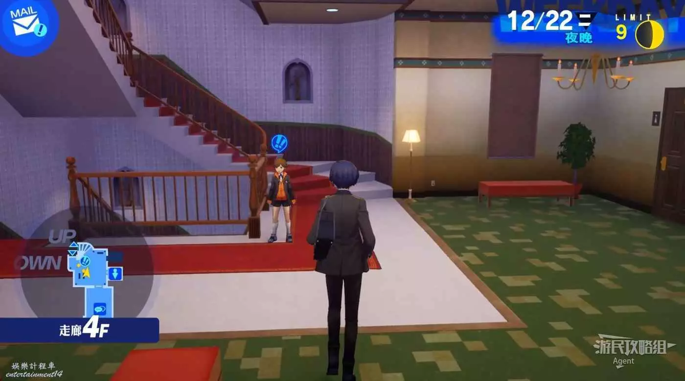 逛完後,走樓梯下樓去一樓。兩側的樓梯都可以下去到一樓。逛逛一樓可以見到桐條美鶴學姐。