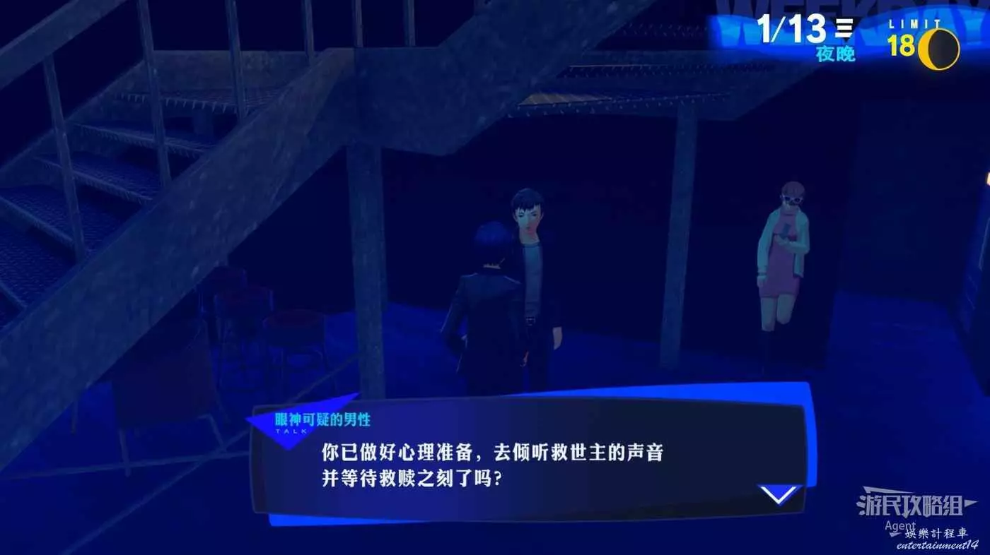 晚上順平告訴你,桐葉購物中心的放縱俱樂部有人賣奇怪網站的網址。但是勇氣要達到2級(平平凡凡)才能進。