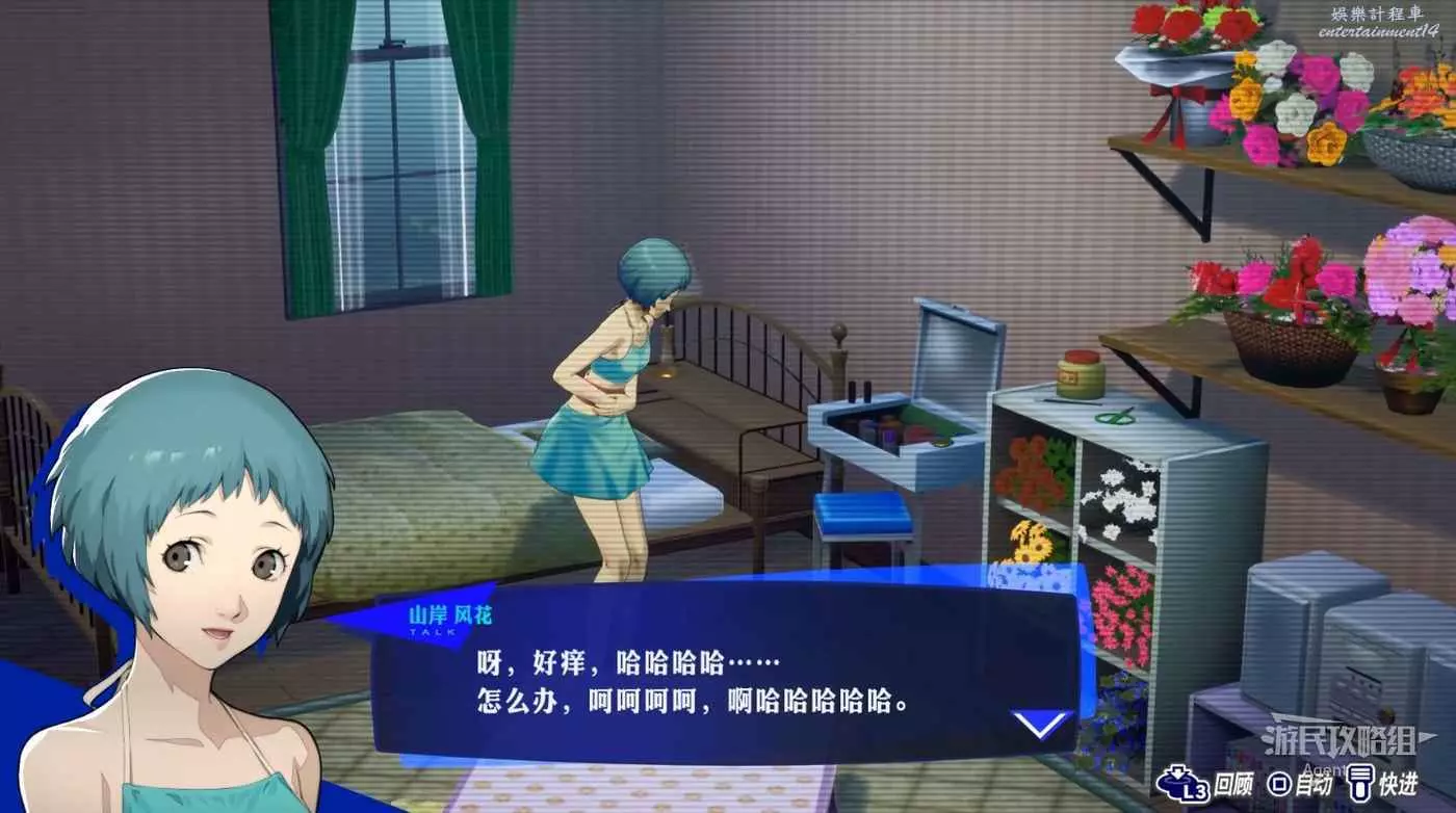 回宿舍和兩位元小姐姐對話,然後可以逛逛宿舍,有好幾層。男生都住在二樓,女生都住在三樓。