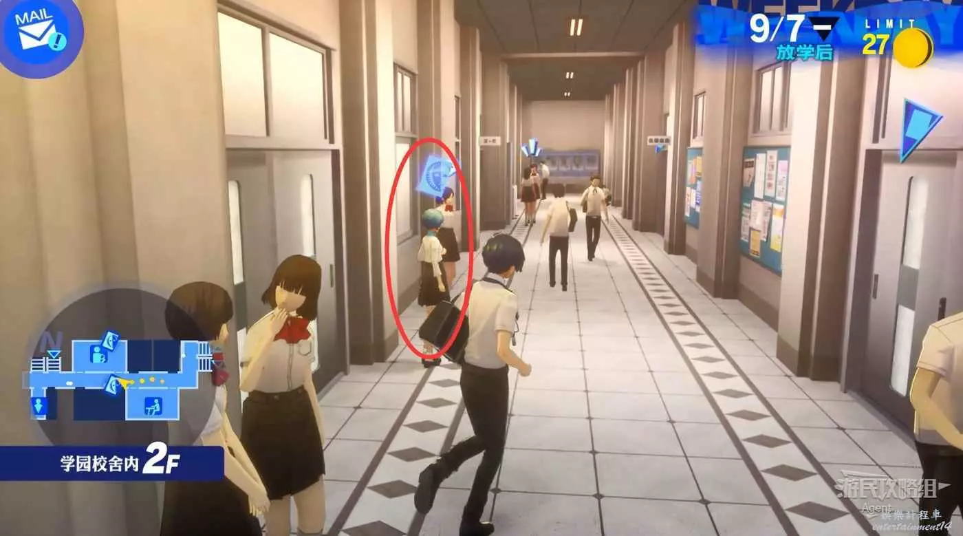 放學後,從教室出來逛逛二樓。出門右拐走樓梯上天台可以看到個可愛女生,後面也會是隊友之一。