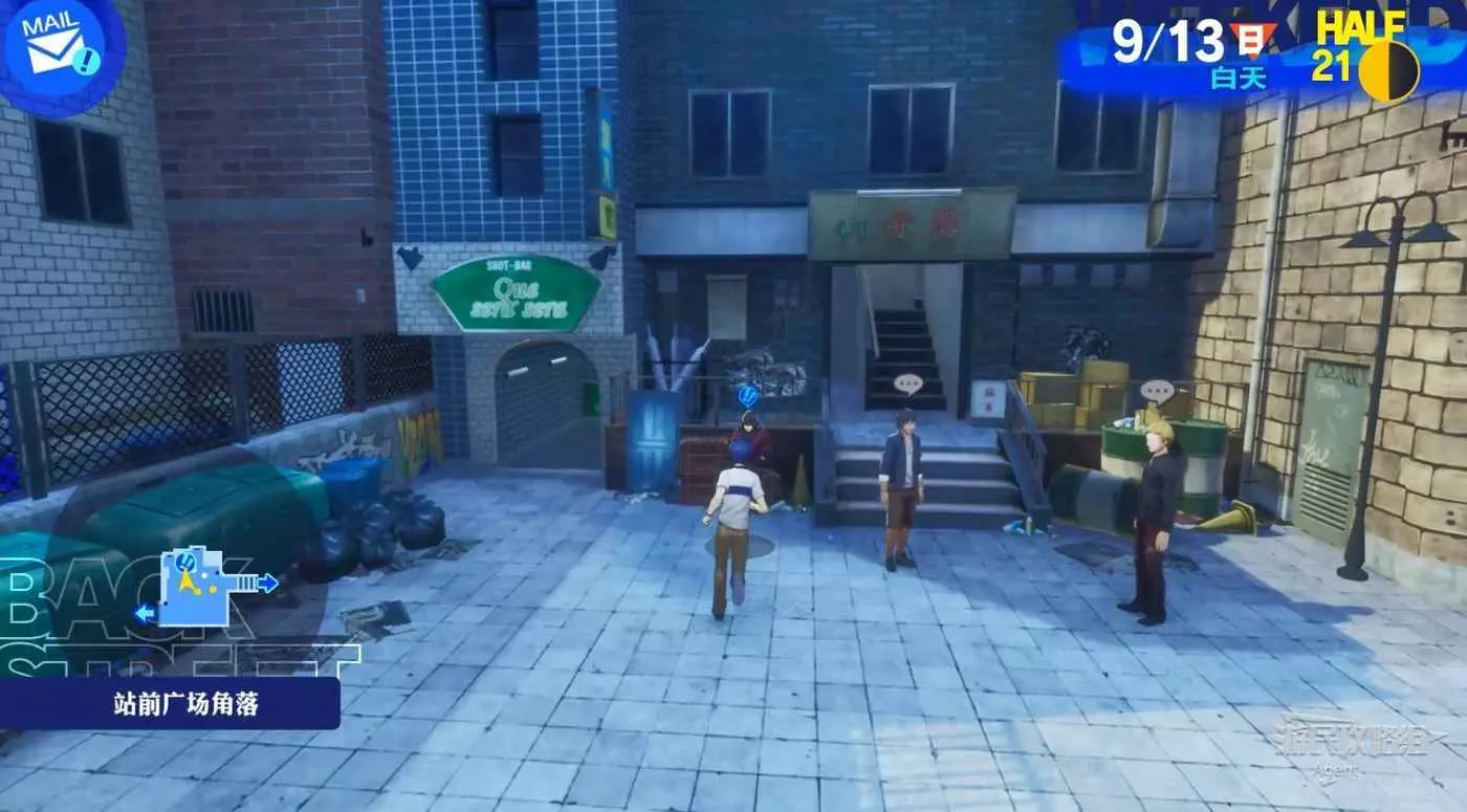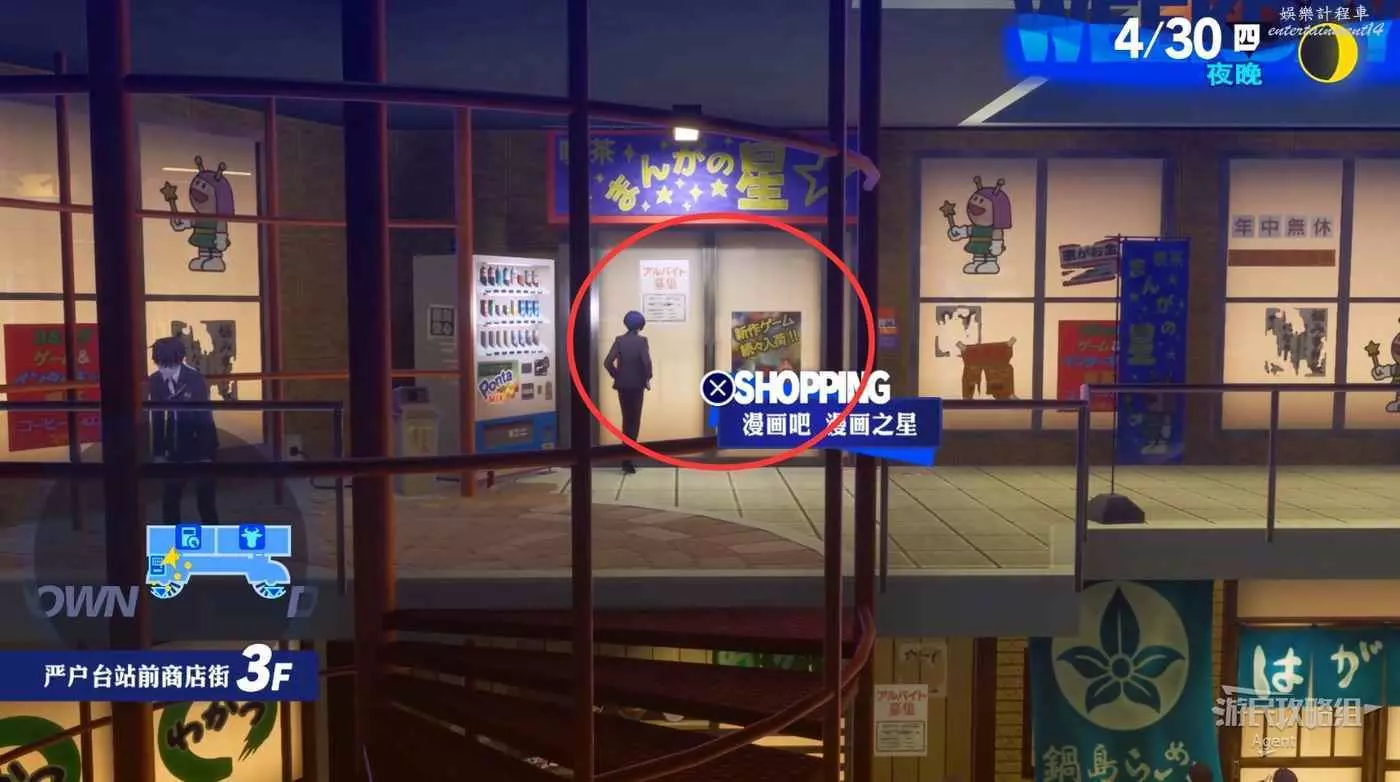然後放學後的時間可以自由支配了,這裡還有很多店鋪:放縱俱樂部只能晚上進,咖啡店可以喝咖啡或者晚上來打工賺錢,藥房可以買藥品,電玩店門口有抓娃娃機。