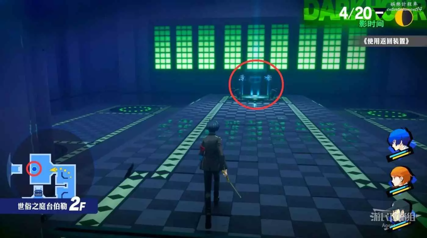 然後用左邊的裝置回到大廳。等下個月通路解鎖時再來爬塔,到時伊莉莎白會通知你。