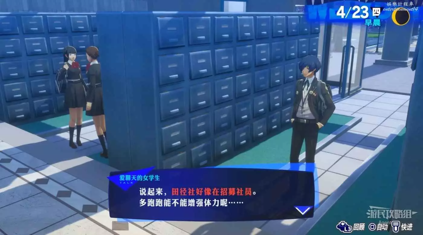 田徑社在學校一樓,東面走到頭,可以抵達運動場。加入田徑社解鎖【社群】戰車 體育社團。