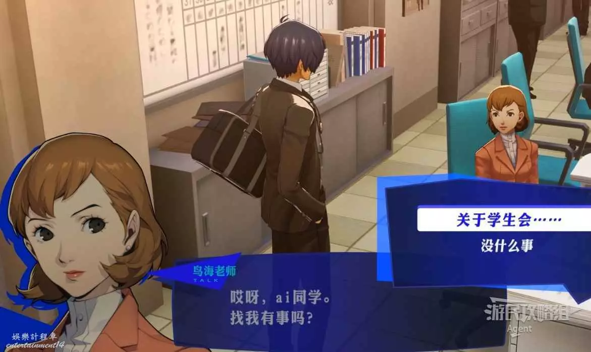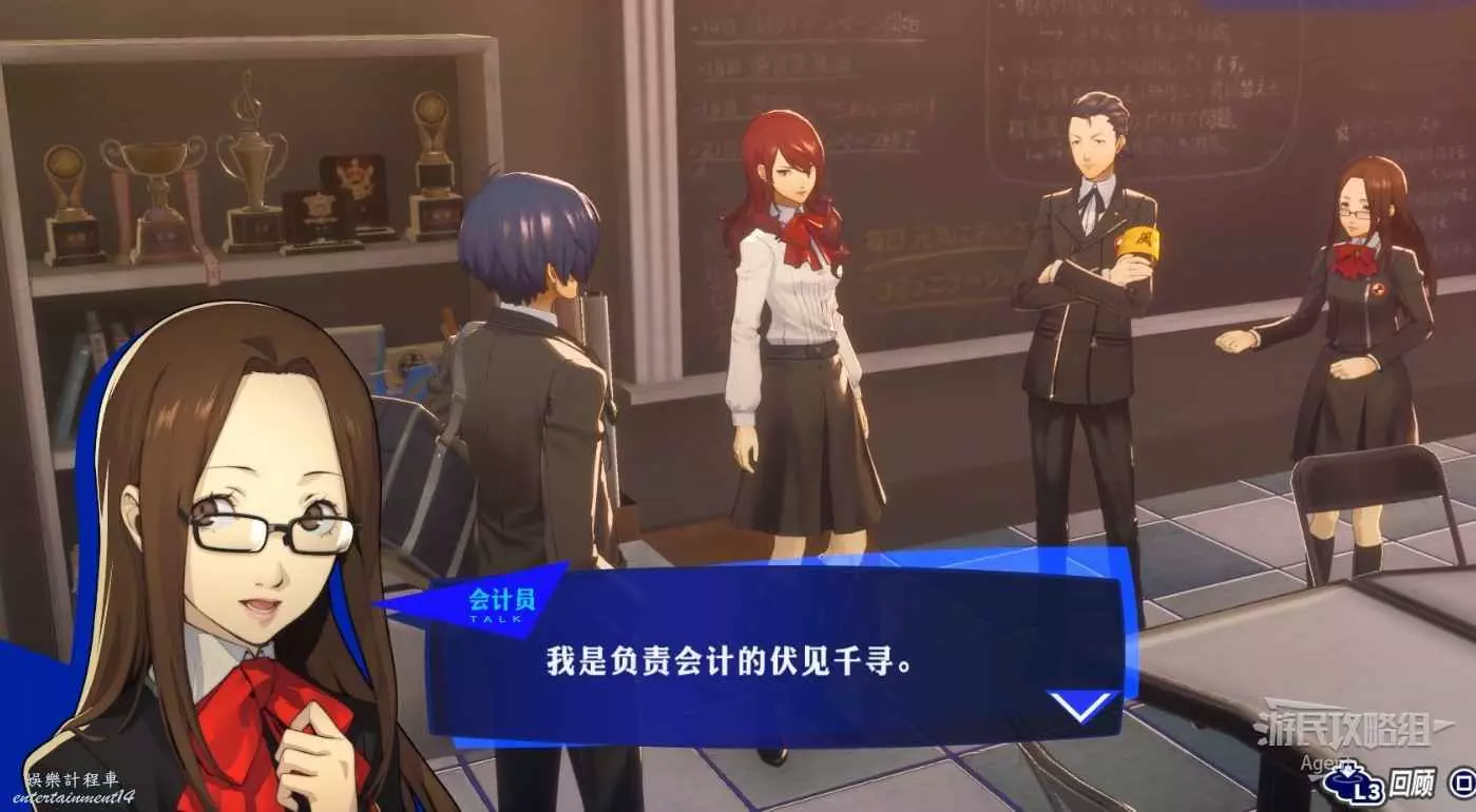 然後再到二樓教室對面的學生會,解鎖【社群】皇帝 學生會。同時認識學生會的會計伏見千尋。