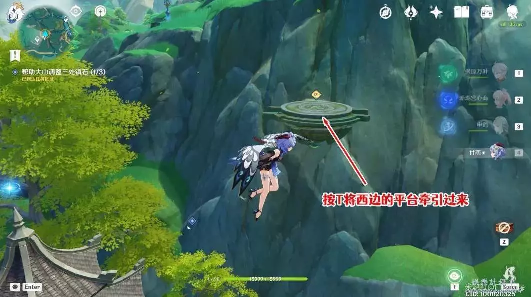 飛起來以後往西邊看,按T運用仙力,將平台牽引過來,之後飛到平台上。