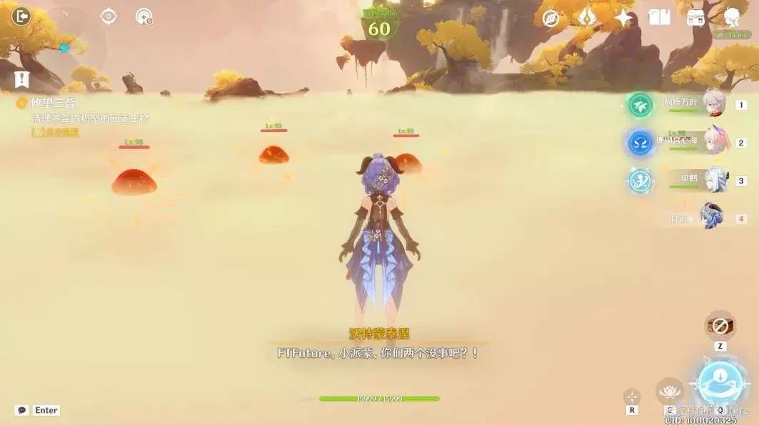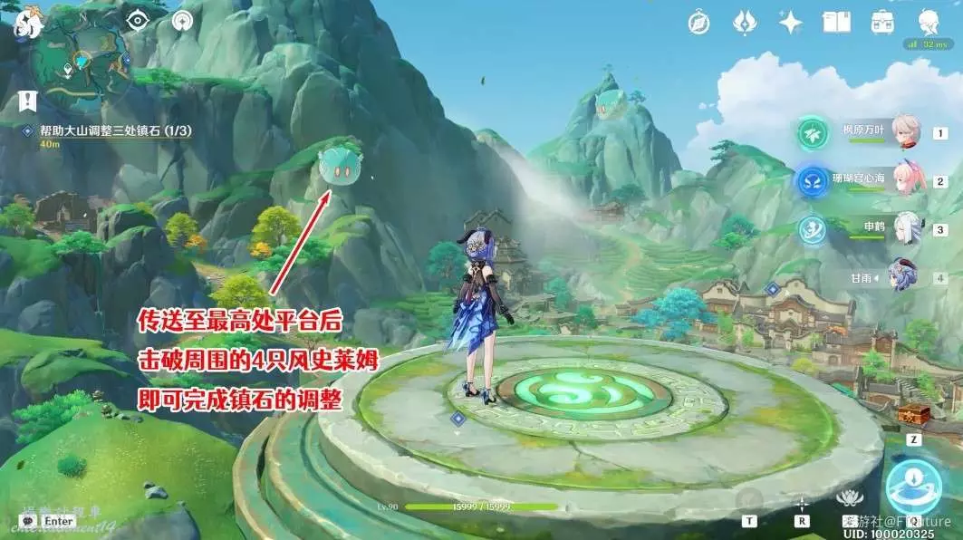 站到平台上以後,周圍會不斷出現風史萊姆,使用弓箭角色將這些風史萊姆全部擊破後,平台上就會出現一個「金鯉浮躍」傳送門,我們啟動一下進行傳送即可。