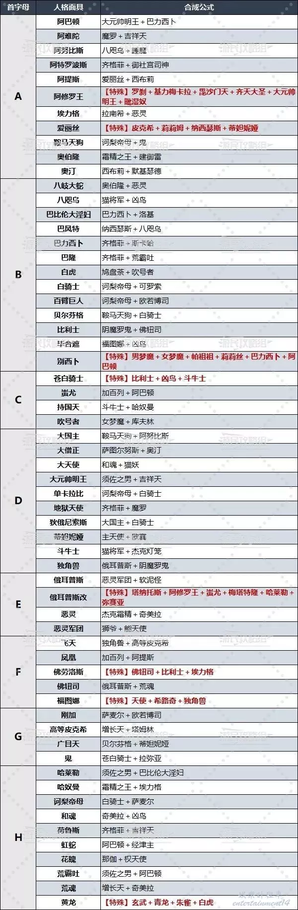 本文中列出的合成公式並非唯一,可能還有其他的公式。解鎖下列面具圖鑒會解鎖主角的新技能: