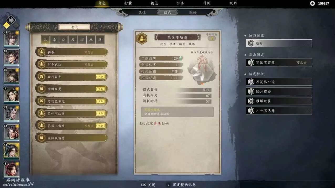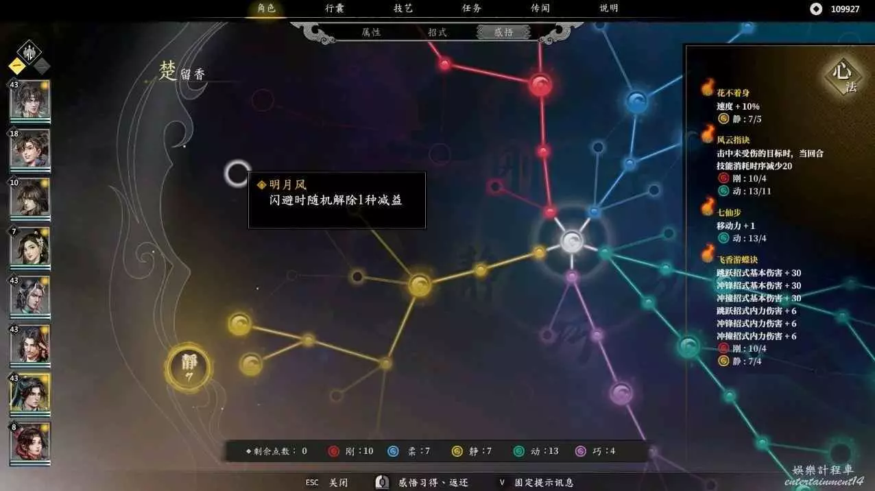 在胡鐵花入隊後去找花姑媽可以拿到飛香遊蝶訣,是香帥在前期作為主要輸出的核心心法,前期的感悟加點是這幾個