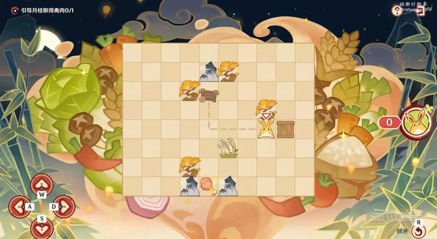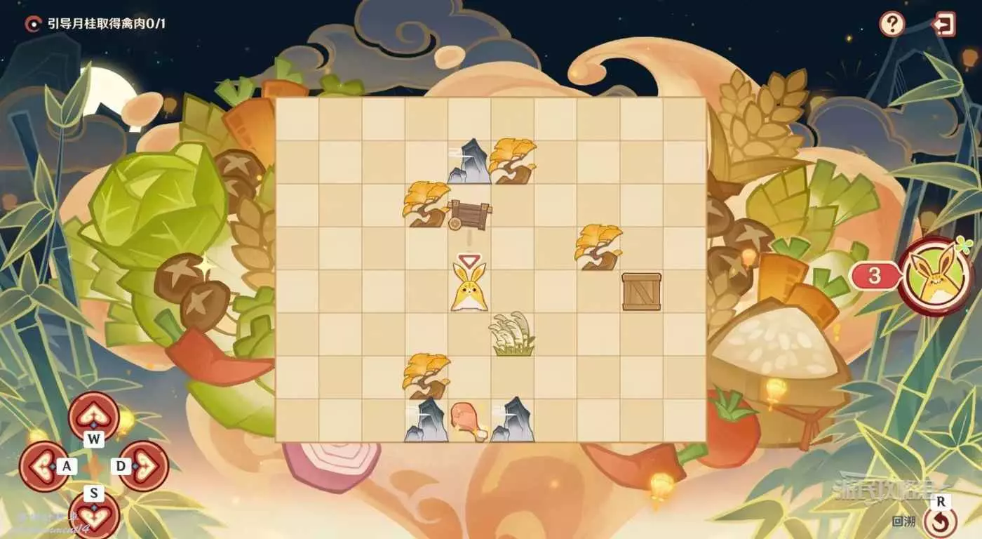 然後讓月桂往回走3格到雞腿正上方,再往下走3格拾取雞腿即可。