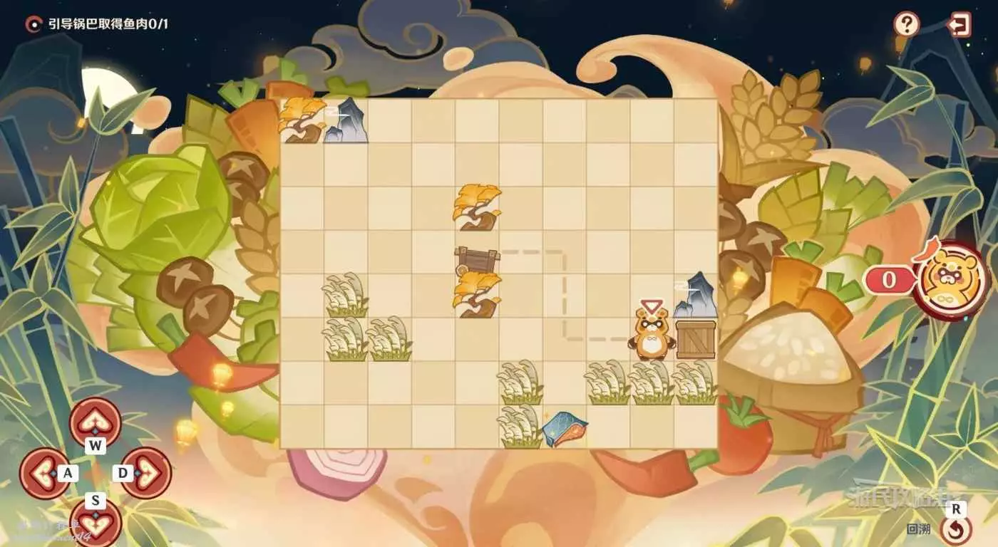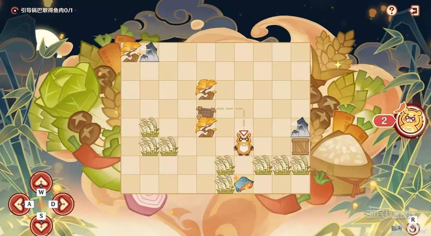 然後往回走2格到魚肉正上方,再往下走2格拾取魚肉即可。