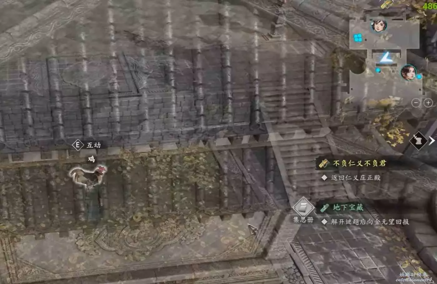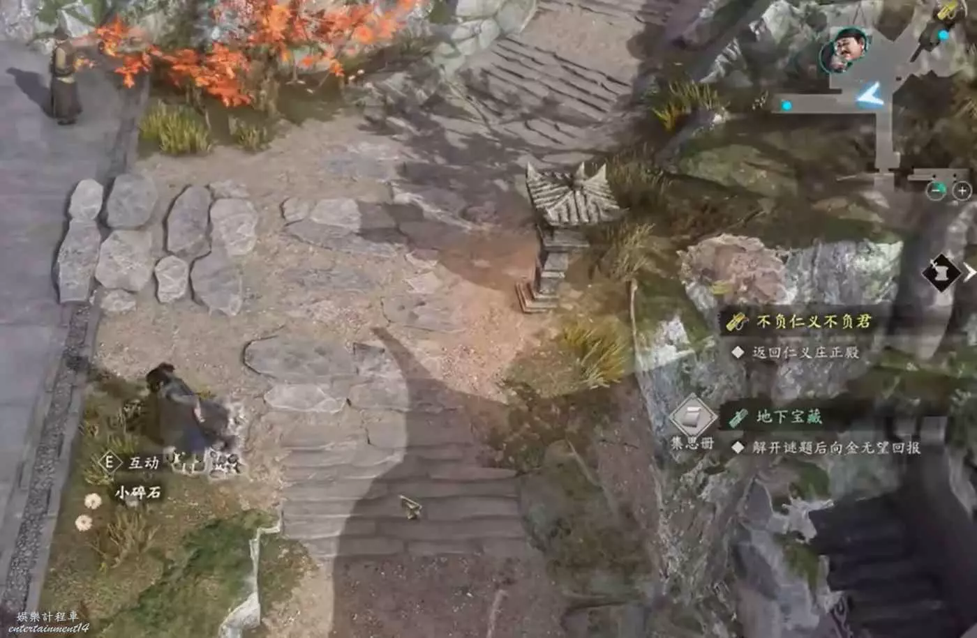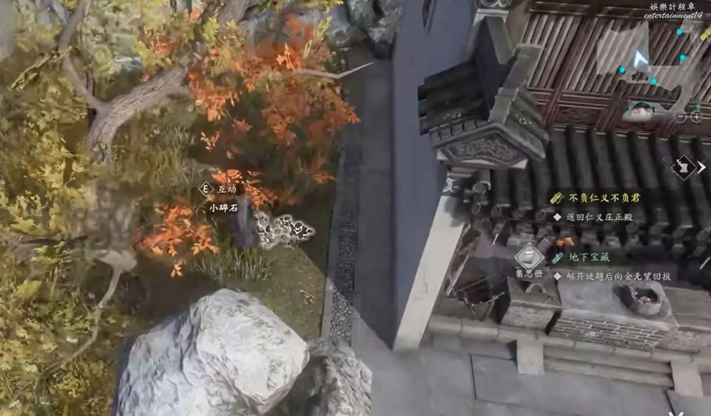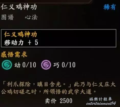 此外第二章在仁義莊廣場上的石頭後面有雞讓你找石頭,給一本加五移動的內功,配合楚留香一格10%增傷大招使用,有一個是在王二呆腳下