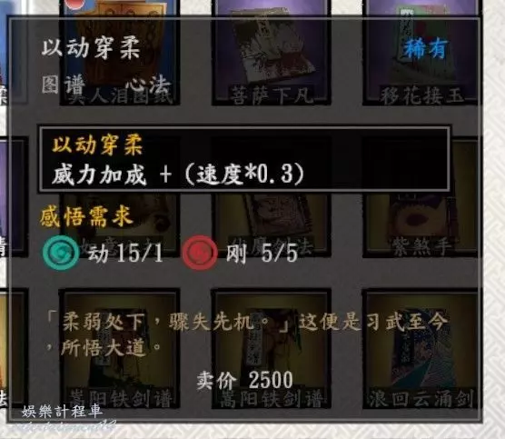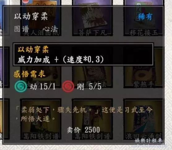 例如15動5剛得以動穿柔,配合鑄劍山莊加20速的湛盧和全點速度屬性挺不錯