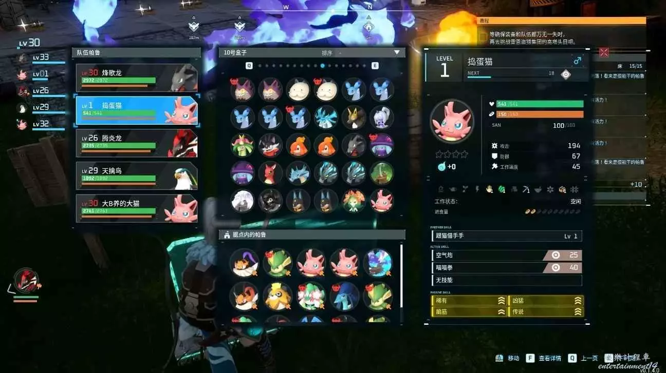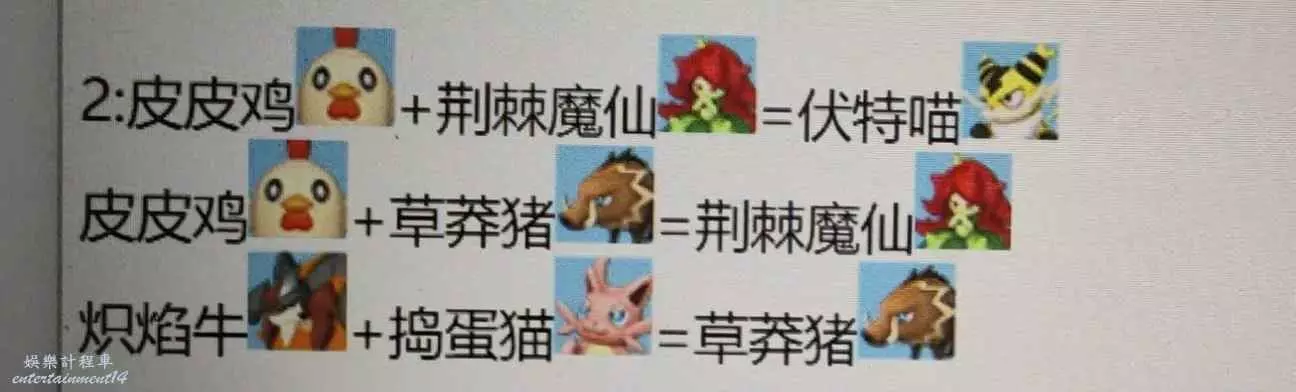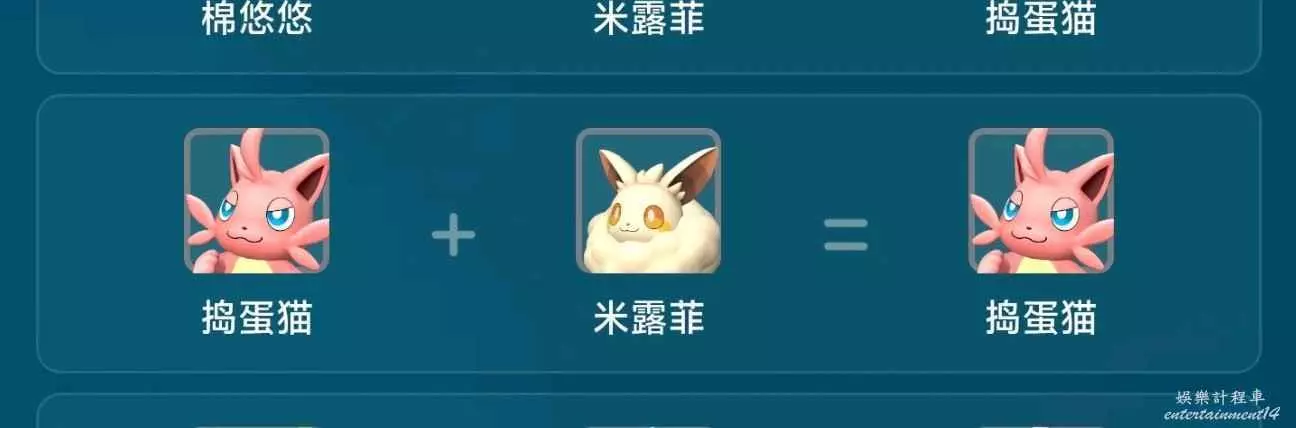 眾所周知,搗蛋貓天生膽小,血脈有缺,因此只有不斷繁育才能洗掉膽小。四詞條中的稀有 腦筋 兇猛只需要通過不斷近親繁殖就可以獲得。傳說詞條較難獲取,我選用的是喚冬獸與搗蛋貓雜交出的熾煙牛,在獲得傳說熾煙牛之後與搗蛋貓雜交獲得草莽豬…(如下圖所示)最後獲得傳說詞條的米露菲,再與搗蛋貓繁育即可獲得傳說搗蛋貓,中間共有五代跨物種繁育,因此需要大量蛋糕來支撐。因為我是在多人伺服器遊玩,若卡塔主bug容易壞檔,所以選擇了非常繁瑣與艱難的五代雜交。同時也確定了全部詞條,所有帕魯都可以通過繁育獲得。