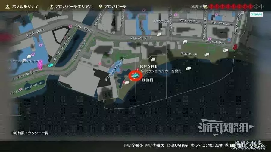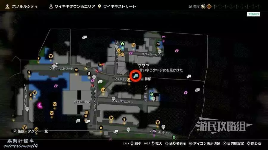3.從計程車停靠點「卡克大道」往北走,靠近氣泡圖示觸發過場動畫