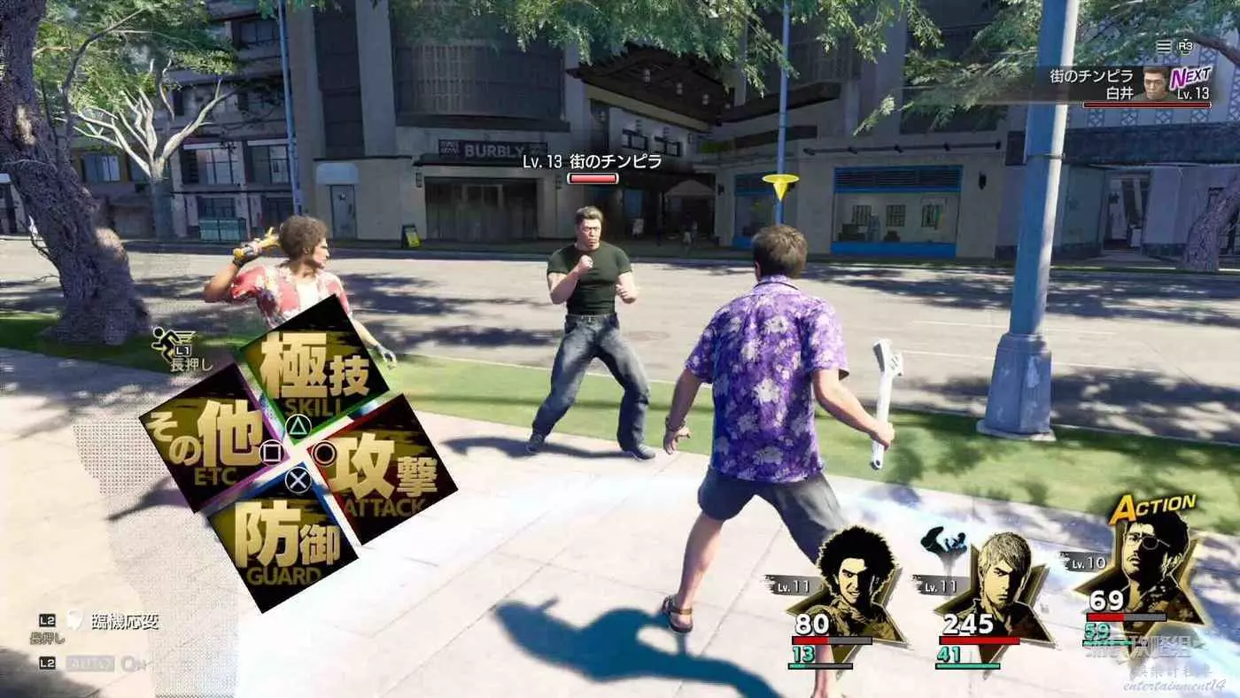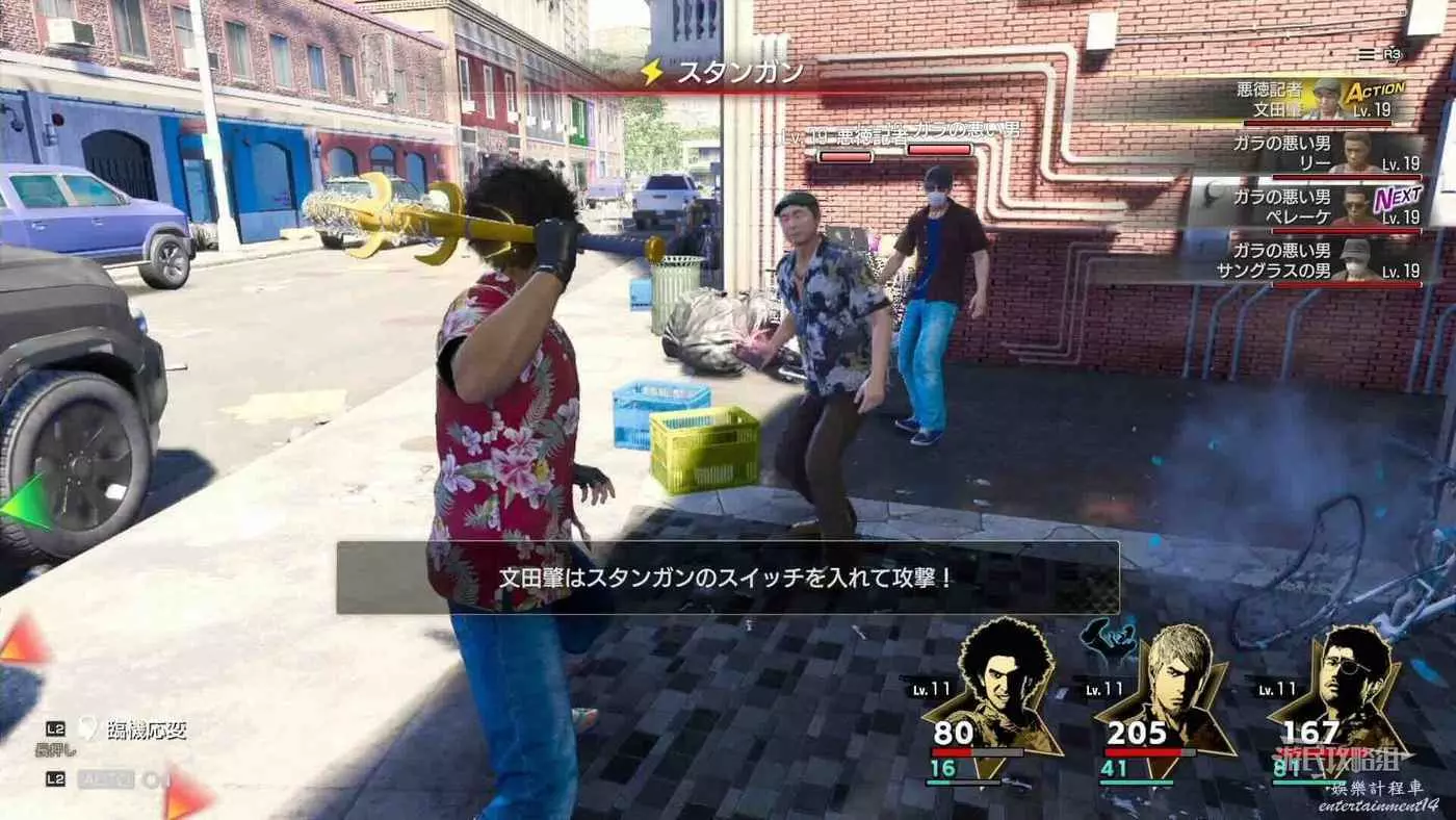 4.與權田原組員開始戰鬥,敵人有3人,等級約為Lv17,推薦儘量15級之後再去挑戰,或者使用隨叫隨到的查理來幫忙,既能造成傷害又能回血