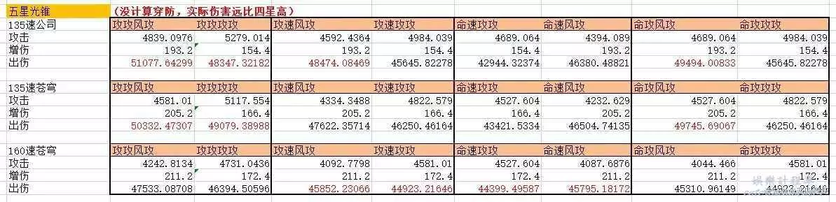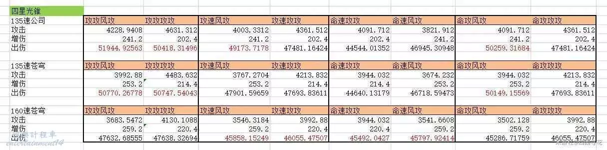 攻攻風攻、攻攻攻攻、攻速風攻、命攻風攻的傷害都還不錯;而中間幾組由於浪費的副詞條太多,沒法有效轉換成大攻擊,所以傷害期望會明顯降低。