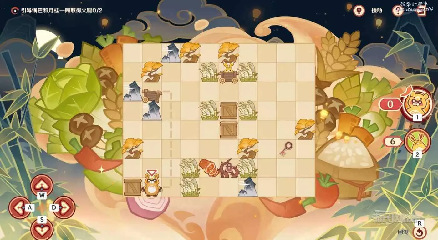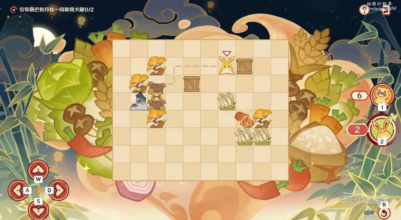 切換到鍋巴,走最近的路線拾取火腿即可(參考下方鍋巴虛線)。