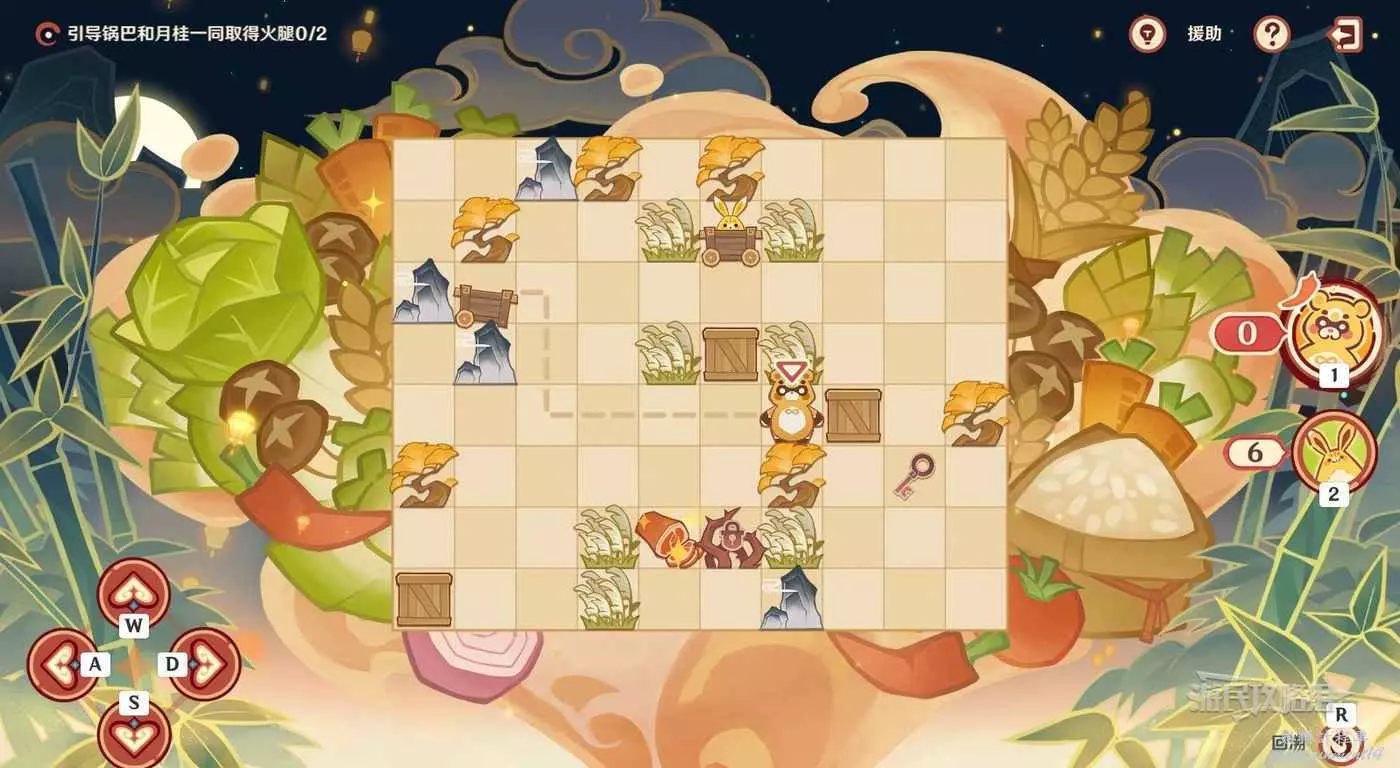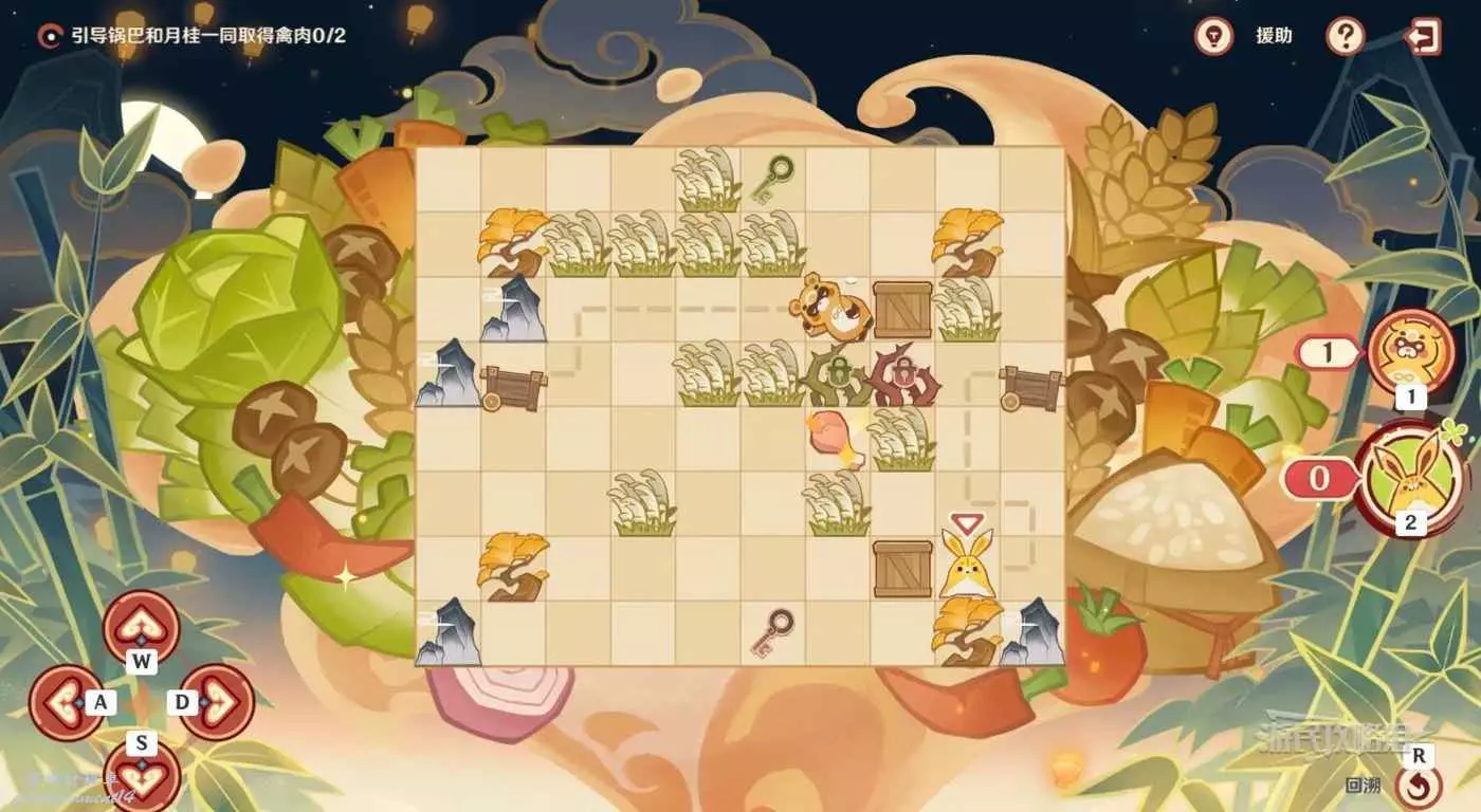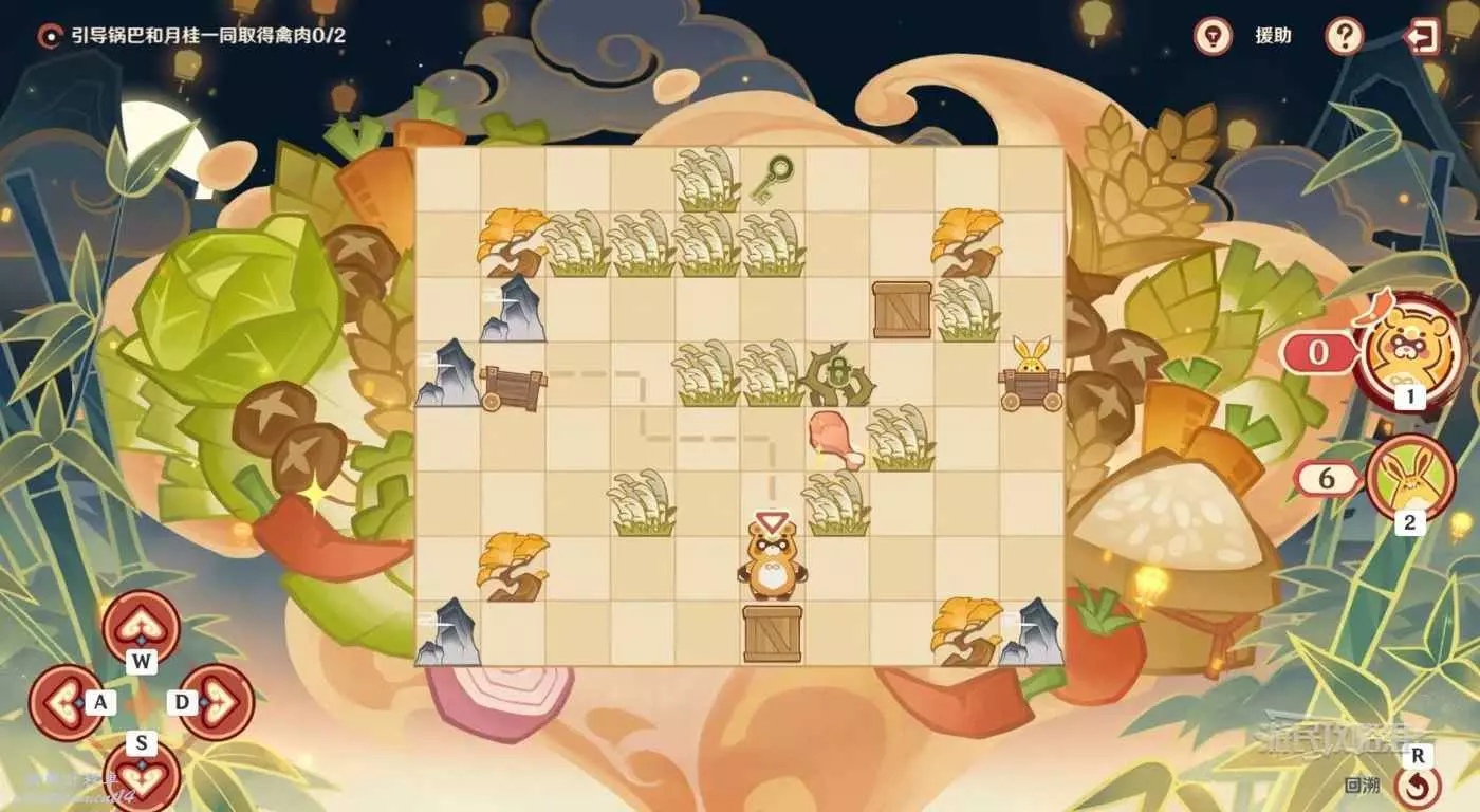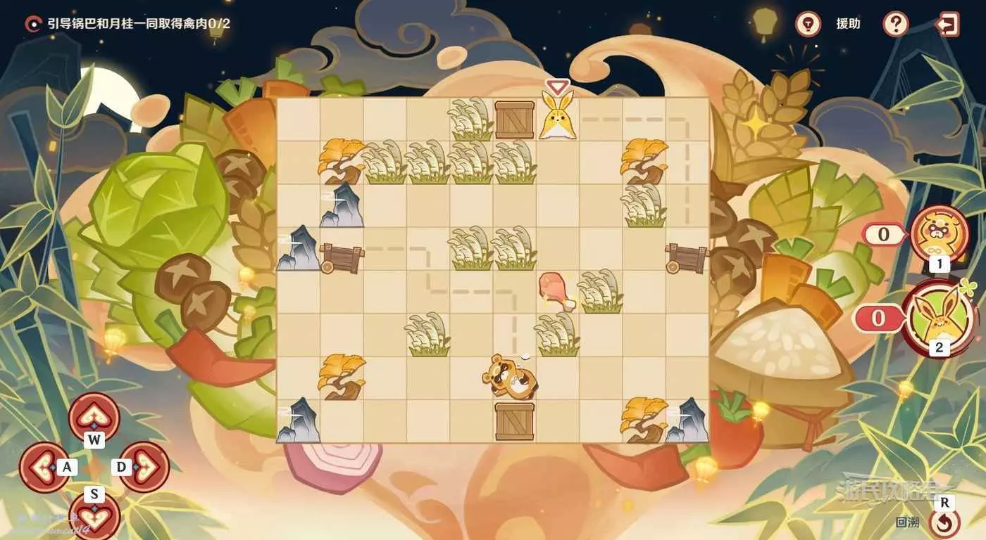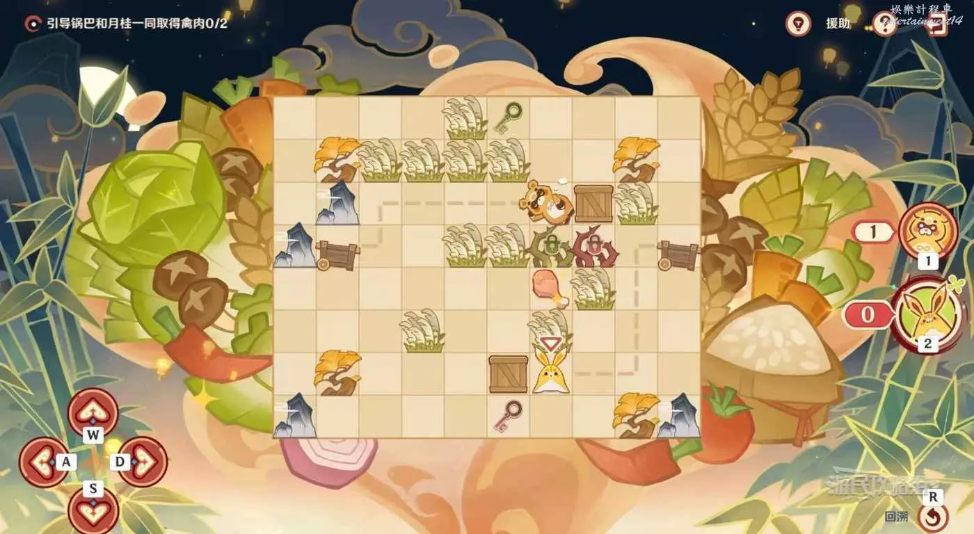 切換到鍋巴,往回走兩格,然後往右走一格拾取雞腿。