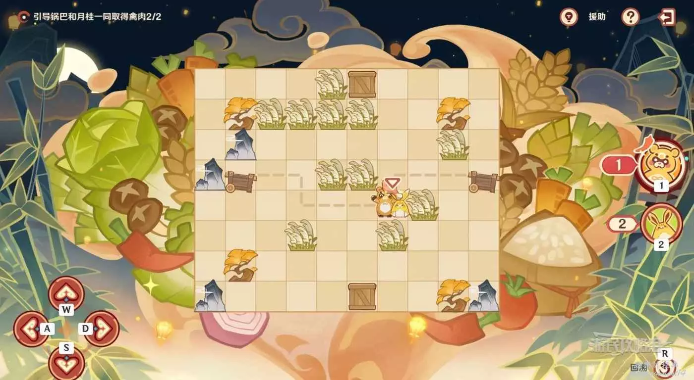 切換到鍋巴,用鍋巴推開擋著月桂的最外側的箱子。為了方便理解,推完讓鍋巴直接返回原位。