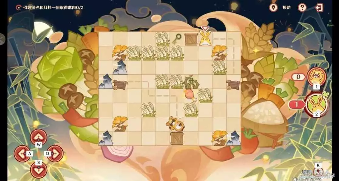 ④月桂推開下方箱子,鍋巴走下路,月桂走上路,完成。