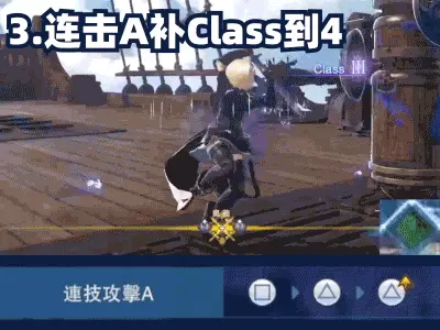 如果不放技能,需要在連招A之後接一下三角控下時間,好讓連招D正好可以觸發Class提升的效果。