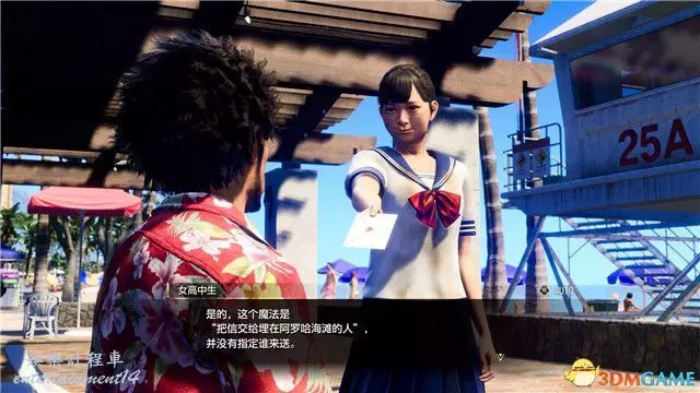 再次來到之前夏威夷草裙女孩與澤井經常見面的地方,這次你將看到澤井在雨天送給這名女子一把傘。