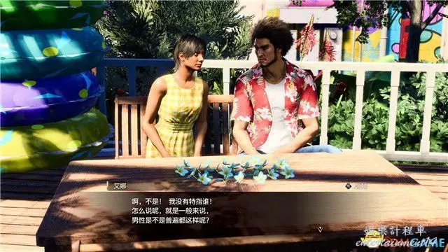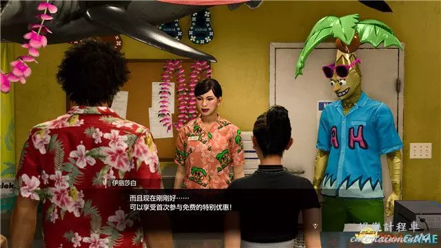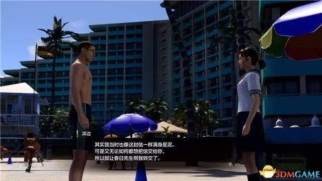 之後一名穿著夏威夷草裙演出服的少女出現,她告訴了澤井那家酒店的位置。