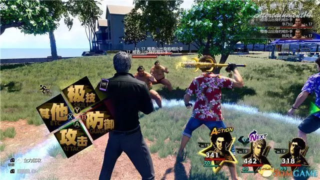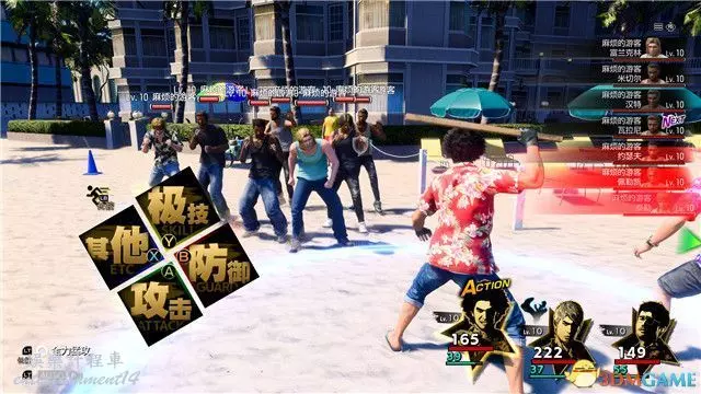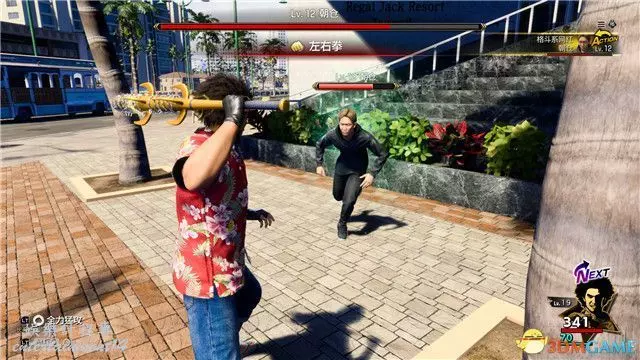 你需要打敗這群地痞,並告訴他們不要再來打擾草裙女子。
