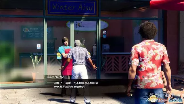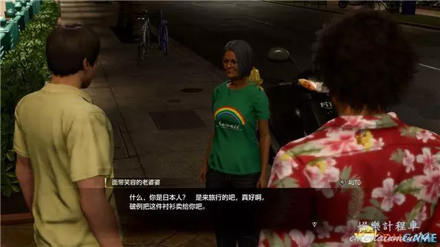 再次來到澤井與夏威夷草裙女子約會的地方,你將看到澤井依然向那名女子“捐款”。