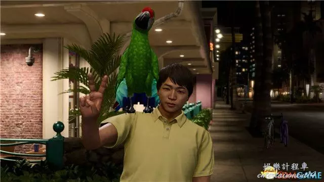 路過他們身旁的老婆婆向澤井推銷衣服,餵養金剛鸚鵡的男子向澤井拍攝與鸚鵡的合照。