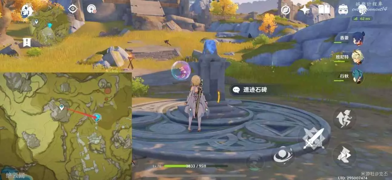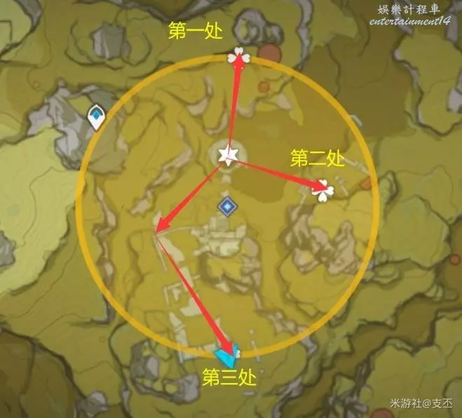在遺跡石碑附近,獲取三處光錐